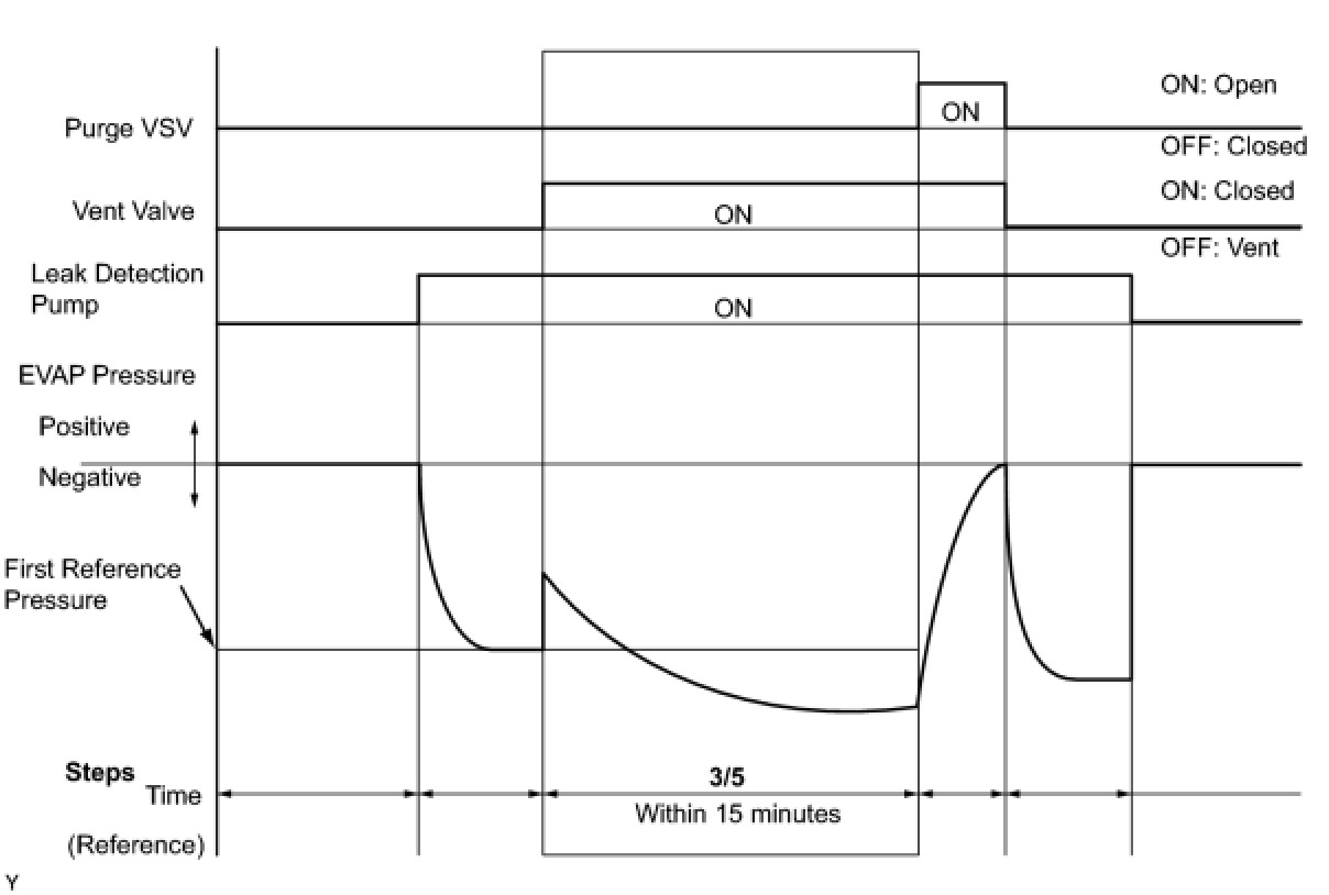 (b) Compare the EVAP pressure in step 3/5 and the second reference pressure (step 5/5).