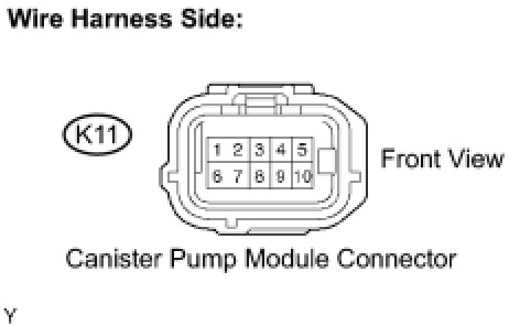 (c) Measure the resistance between the VPMP terminal of the ECM connector and the VGND terminal of the canister pump module connector.