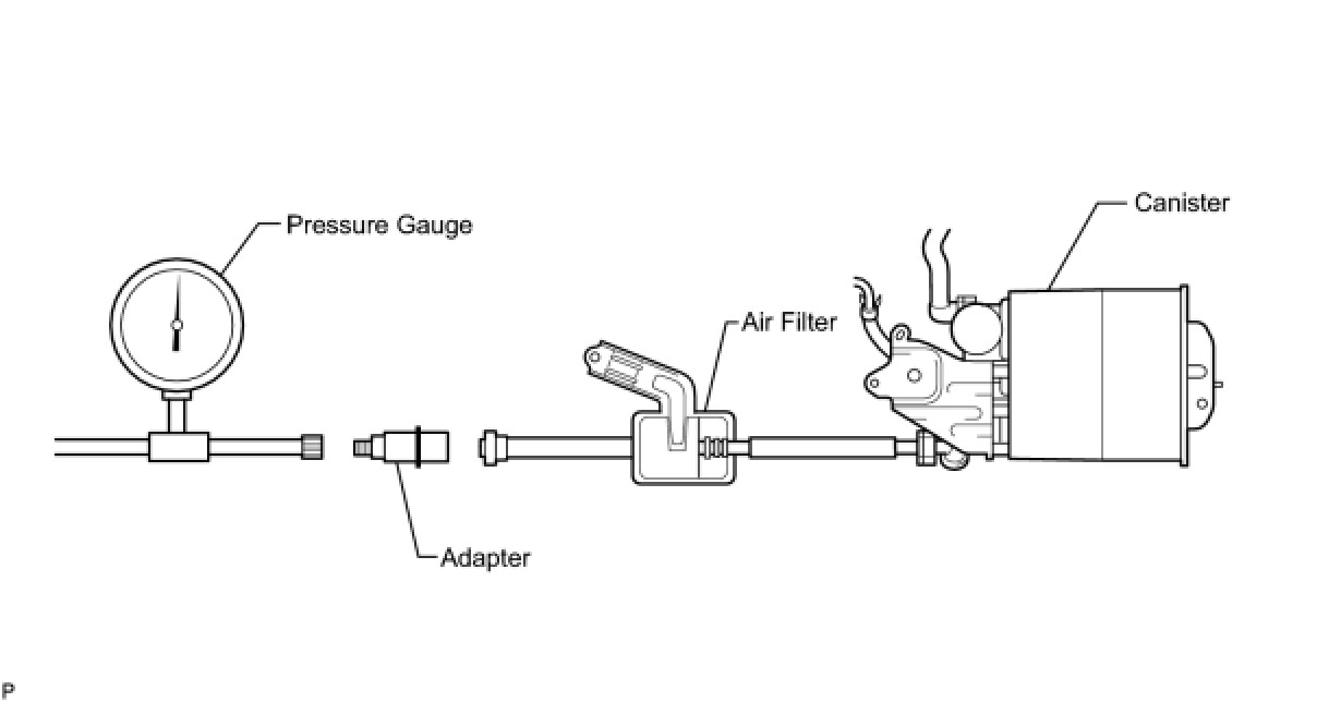 4. Check the pressure. If the pressure is 2 kPa (15 mmHg) or more, the fuel cap is normal.
