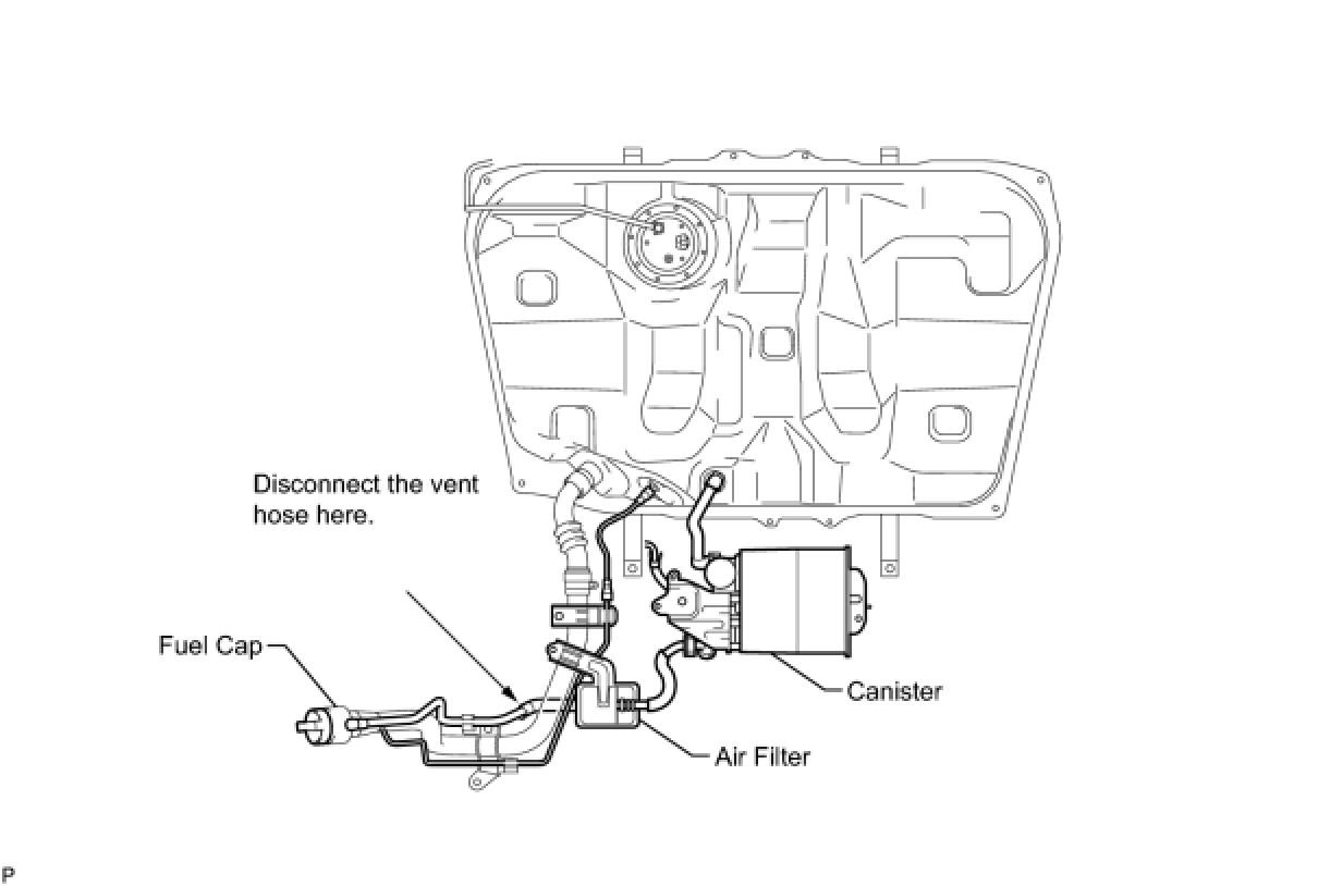HINT: Disconnect the hose between the canister and the fuel tank from the canister. Block the canister side and conduct an inspection. In this way, the fuel tank can be excluded as an area suspected of causing fuel leaks.