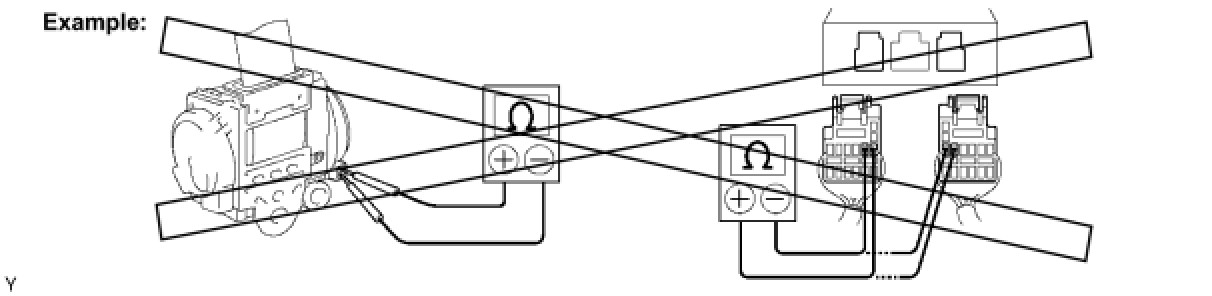 (6) When measuring the resistance between terminals of a wire connector, insert the tester probe carefully to prevent terminals from bending.