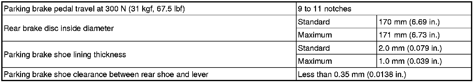 SERVICE SPECIFICATIONS: PARKING BRAKE: SERVICE DATA
