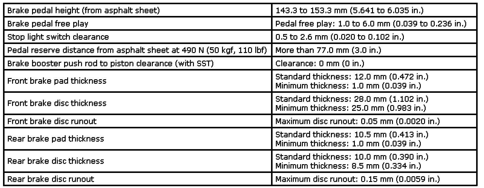 SERVICE SPECIFICATIONS: BRAKE: SERVICE DATA