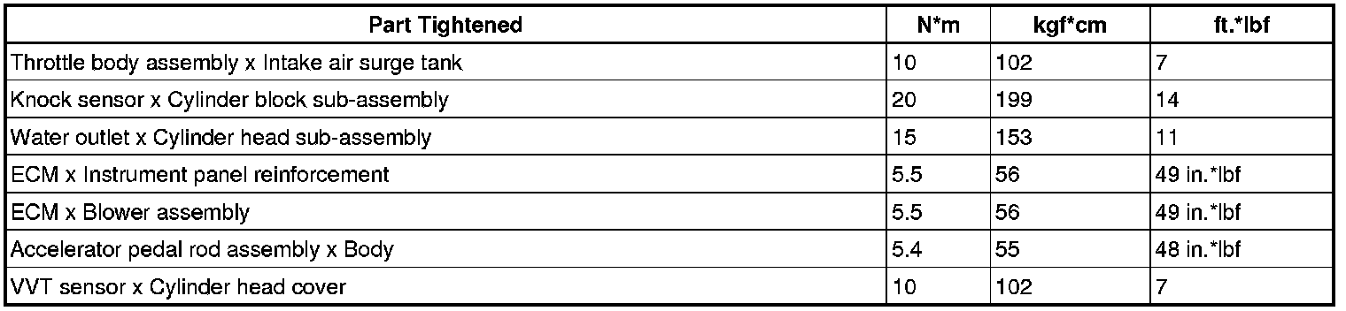 SERVICE SPECIFICATIONS: 2GR-FE ENGINE CONTROL SYSTEM: TORQUE SPECIFICATIONS