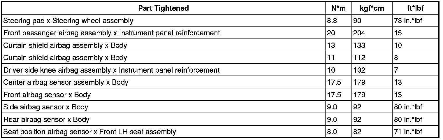 SERVICE SPECIFICATIONS: SUPPLEMENTAL RESTRAINT SYSTEM: TORQUE SPECIFICATIONS