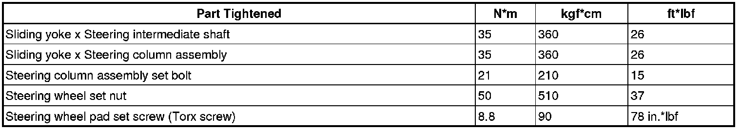 TORQUE SPECIFICATIONS