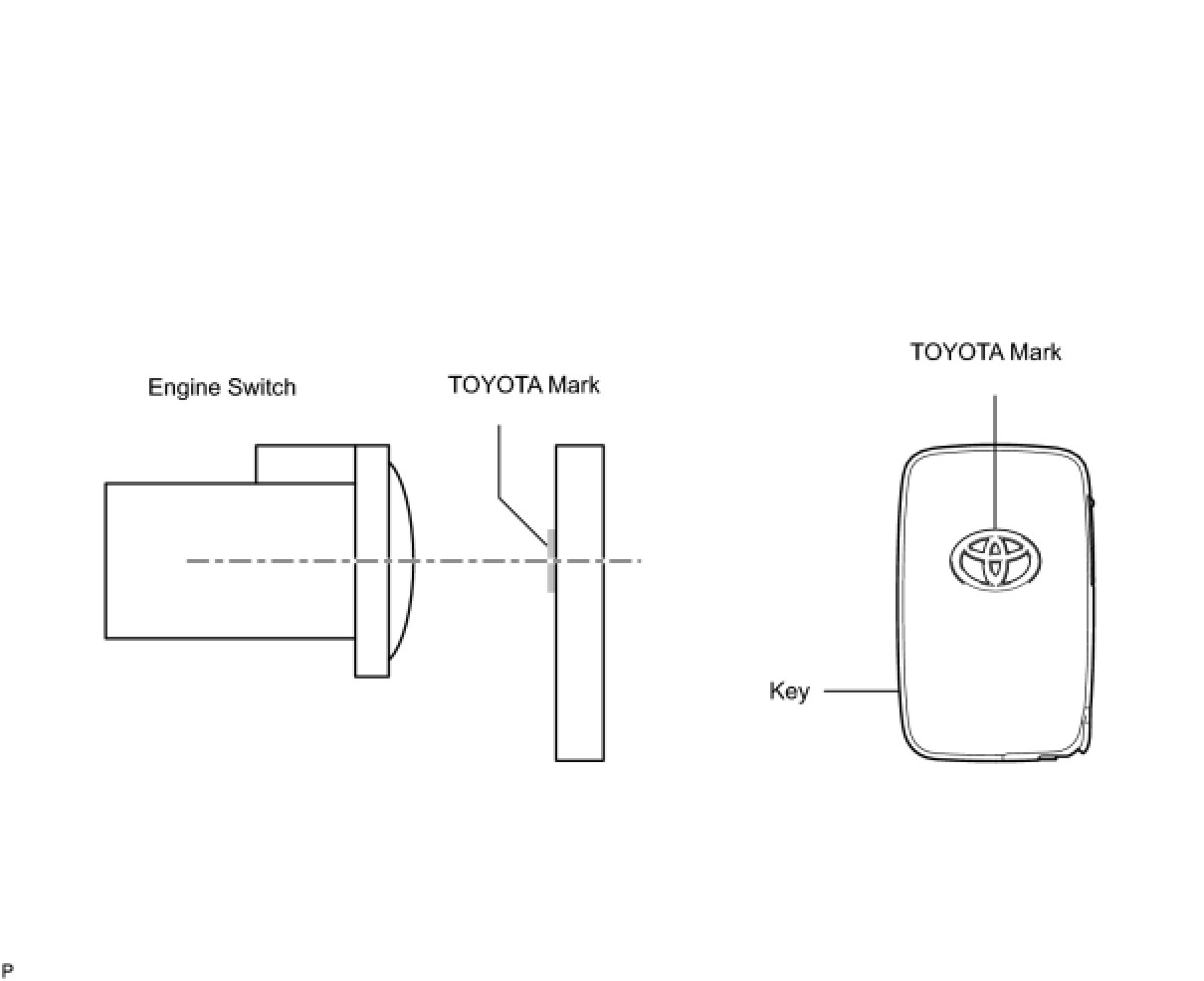 (a) To operate the push button start system when the key battery is low, hold the TOYOTA mark of the key against the engine switch while depressing the brake pedal.