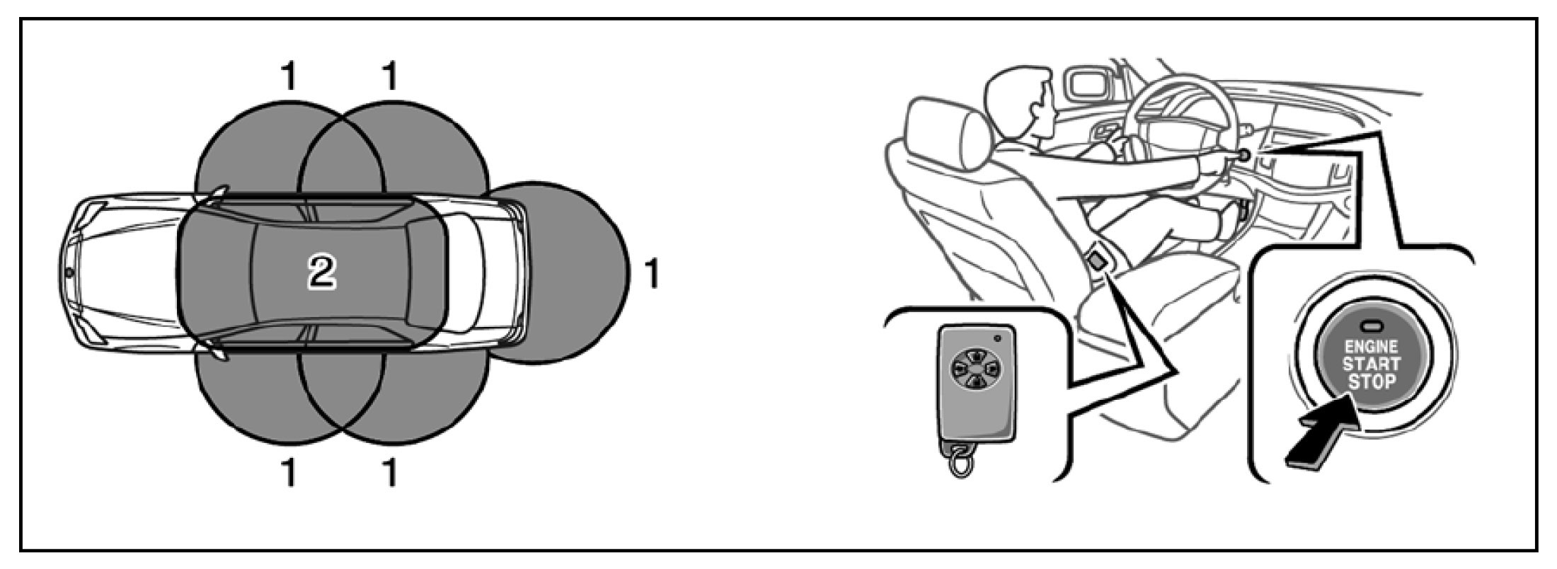 Registered Smart Key MUST be in actuation area No. 1 for this check (see illustrations).