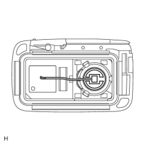 (1) Remove the battery from the electrical key transmitter that does not operate. Attach a lead wire (0.6 mm (0.0236 in.) in diameter or less including wire sheath) with tape or equivalent to the negative terminal Removal.