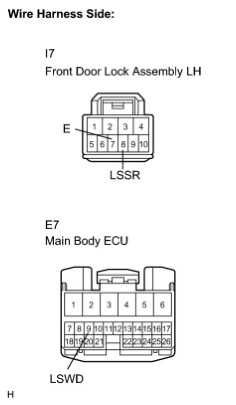 The main body ECU is connected to the driver's door lock assembly via terminal LSWD and driver's door lock/unlock state signals are input to the main body ECU.