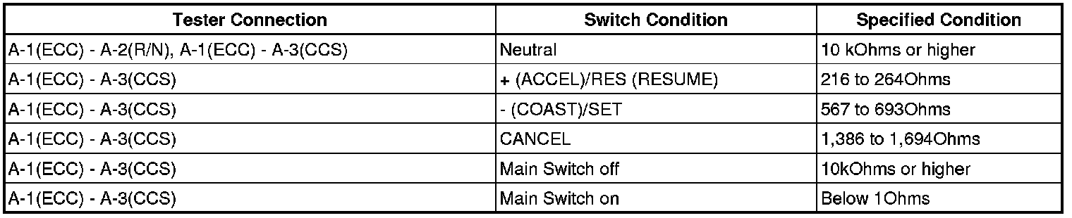 CRUISE CONTROL: CRUISE CONTROL MAIN SWITCH: INSPECTION