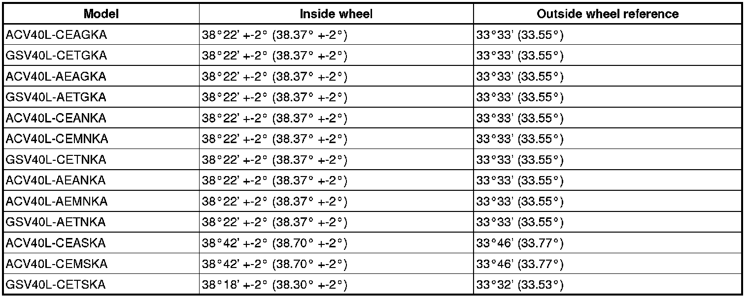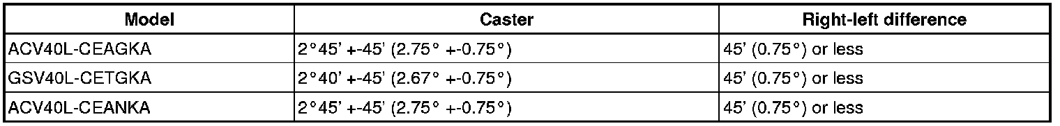 - The maximum tolerance of the right and left difference for the camber and caster is 45' (0.75°) or less.
