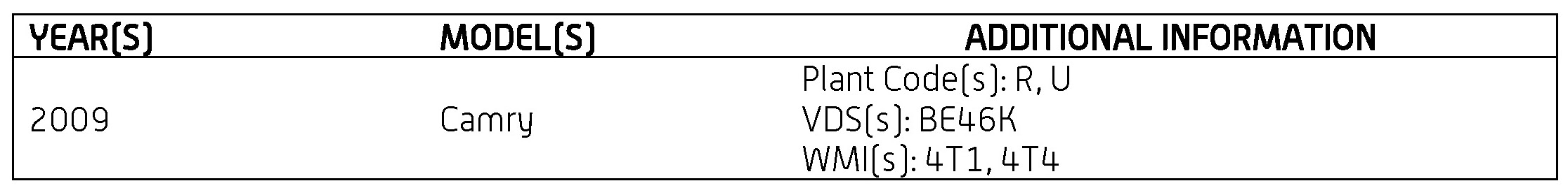 APPLICABLE VEHICLES: