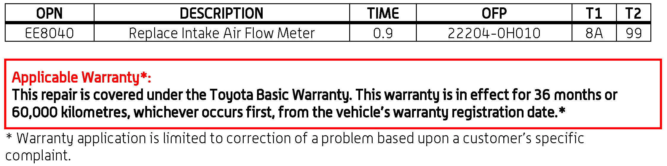 An improved intake air flow meter has been developed and implemented in production to address this condition. Use the following repair procedure to diagnose and repair customer complaint vehicles.
