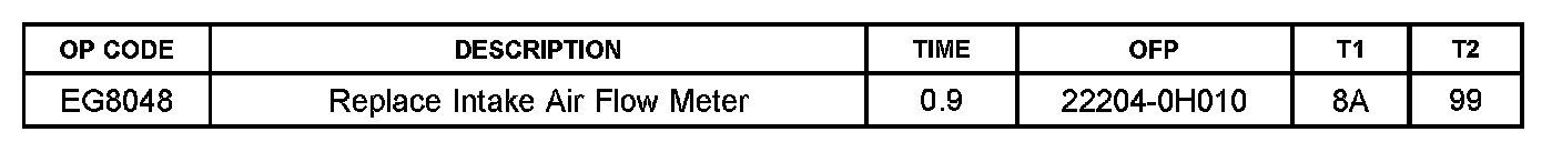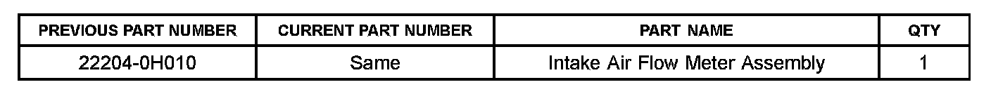 An improved intake air flow meter has been developed and implemented in production to address this condition. Use the following repair procedure to diagnose and repair customer complaint vehicles.
