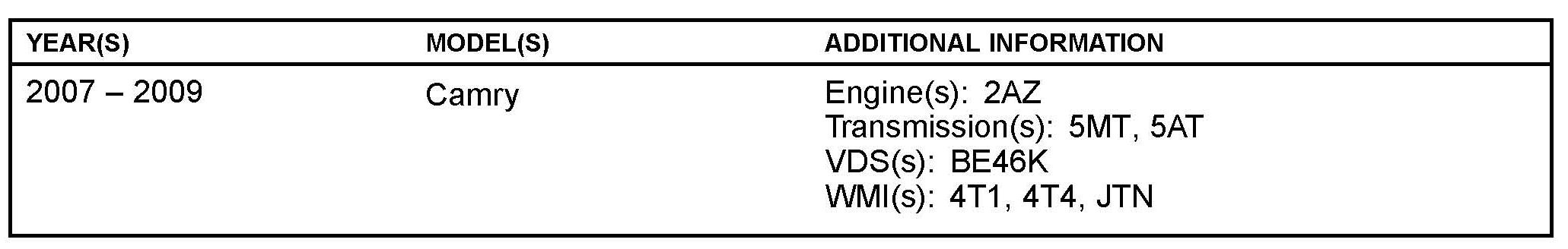 Some 2007 - 2009 model year Camry vehicles with a 2AZ-FE engine may exhibit a MIL "ON" condition with Diagnostic Trouble Code (DTC) P0456 - Evaporative Emission Control System Leak Detected (Very Small Leak). The Engine Control Module/ECM (SAE term: Powertrain Control Module/PCM) logic has been modified to reduce the possibility of this condition occurring. Use the following repair procedure to address this condition.