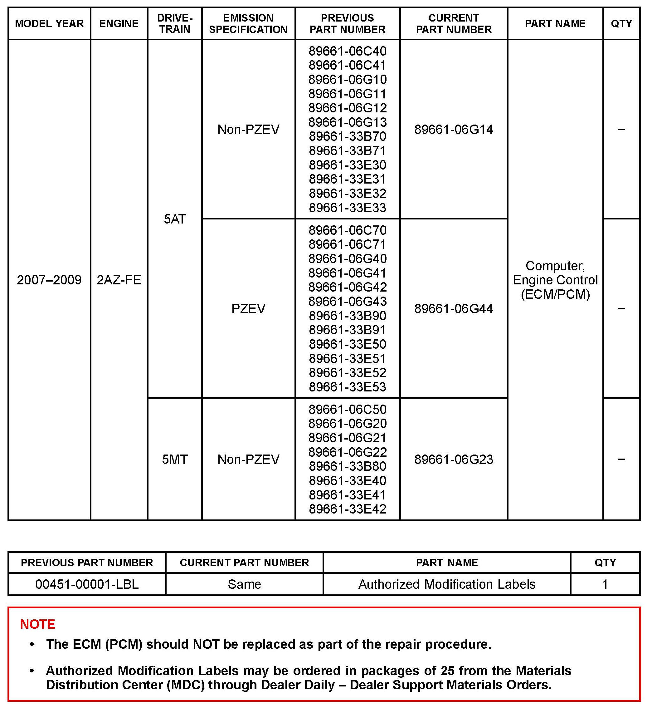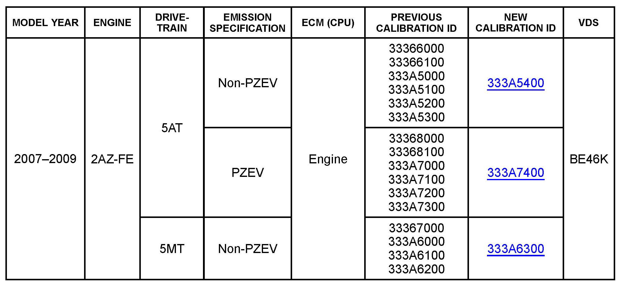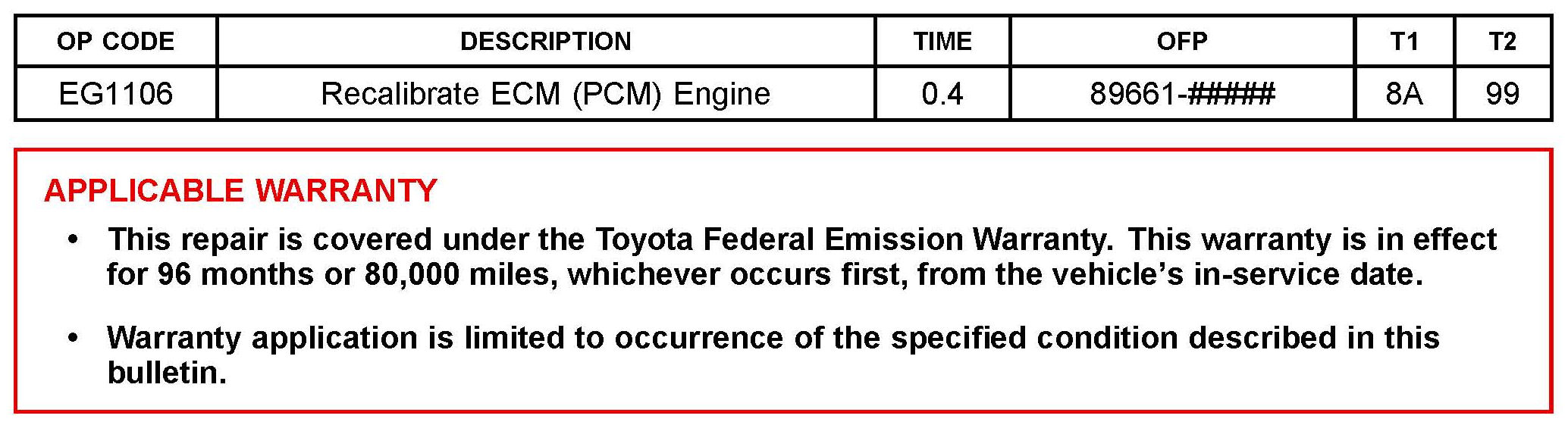 Follow the procedures outlined in TSB No. T-SB-0064-10, "Techstream ECU Flash Reprogramming Procedure� and flash the ECM (PCM) with the NEW calibration file update.