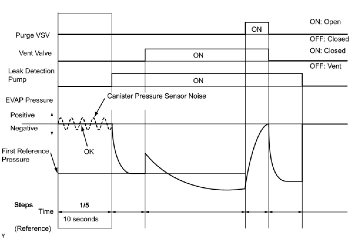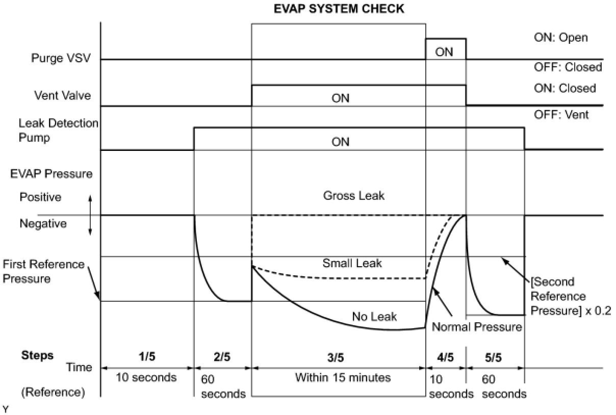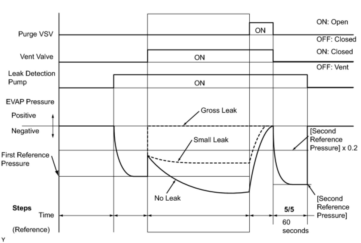 (b) Compare the EVAP pressure in step 3/5 and the second reference pressure (step 5/5).