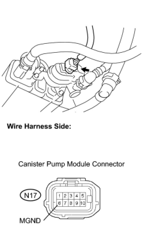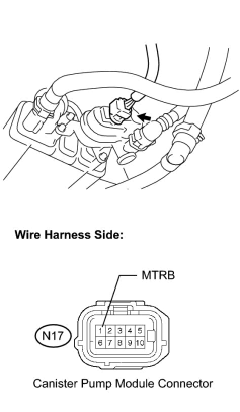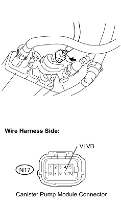 B -- INSPECT CANISTER PUMP MODULE (POWER SOURCE FOR VENT VALVE)