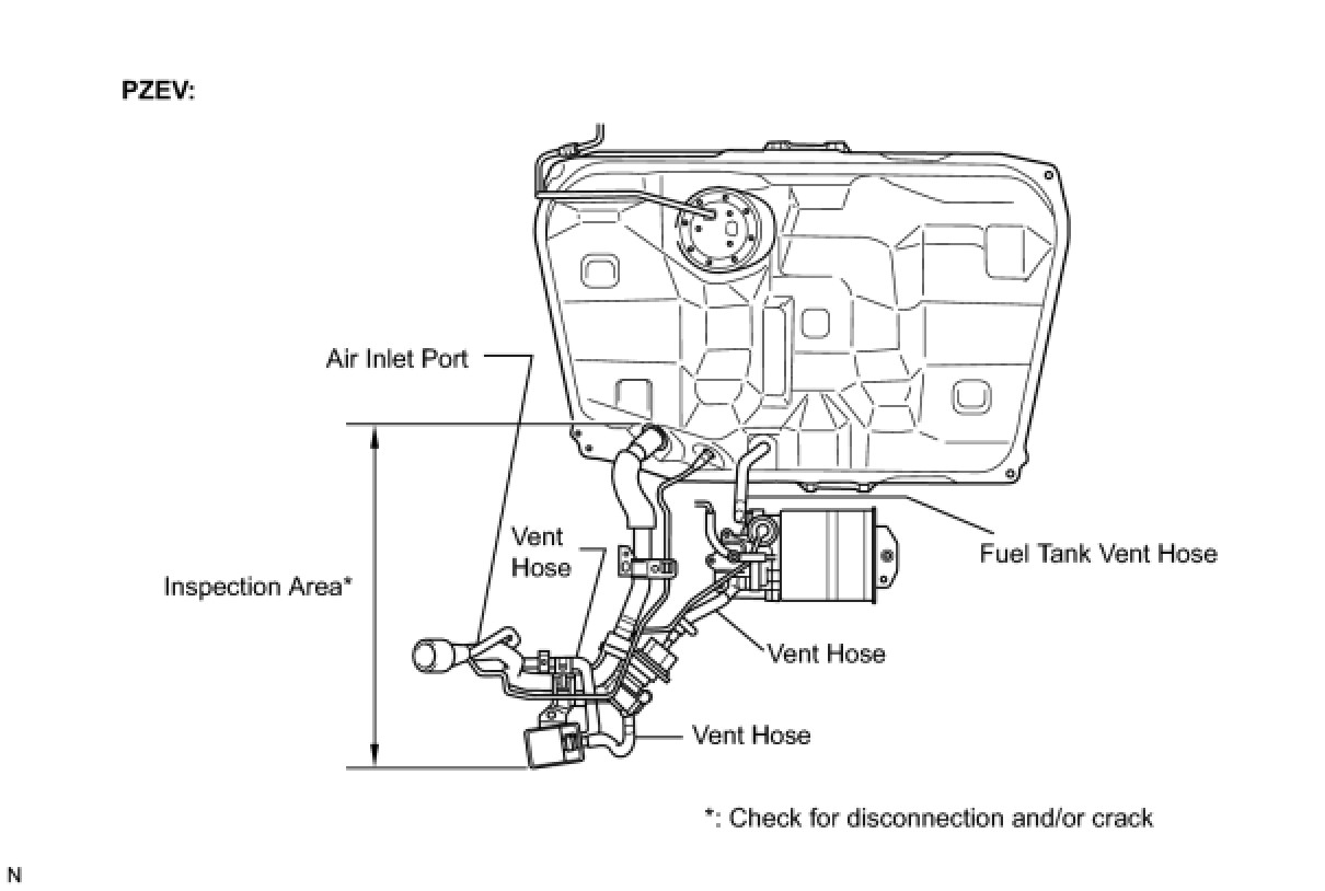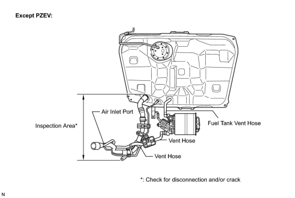 NOTICE: When replacing the canister, check the canister pump module interior and related pipes for water, fuel and other liquids. If liquids are present, check for disconnections and/or cracks in the following: 1) the pipe from the air inlet port to the canister pump module; 2) the canister filter; and 3) the fuel tank vent hose.