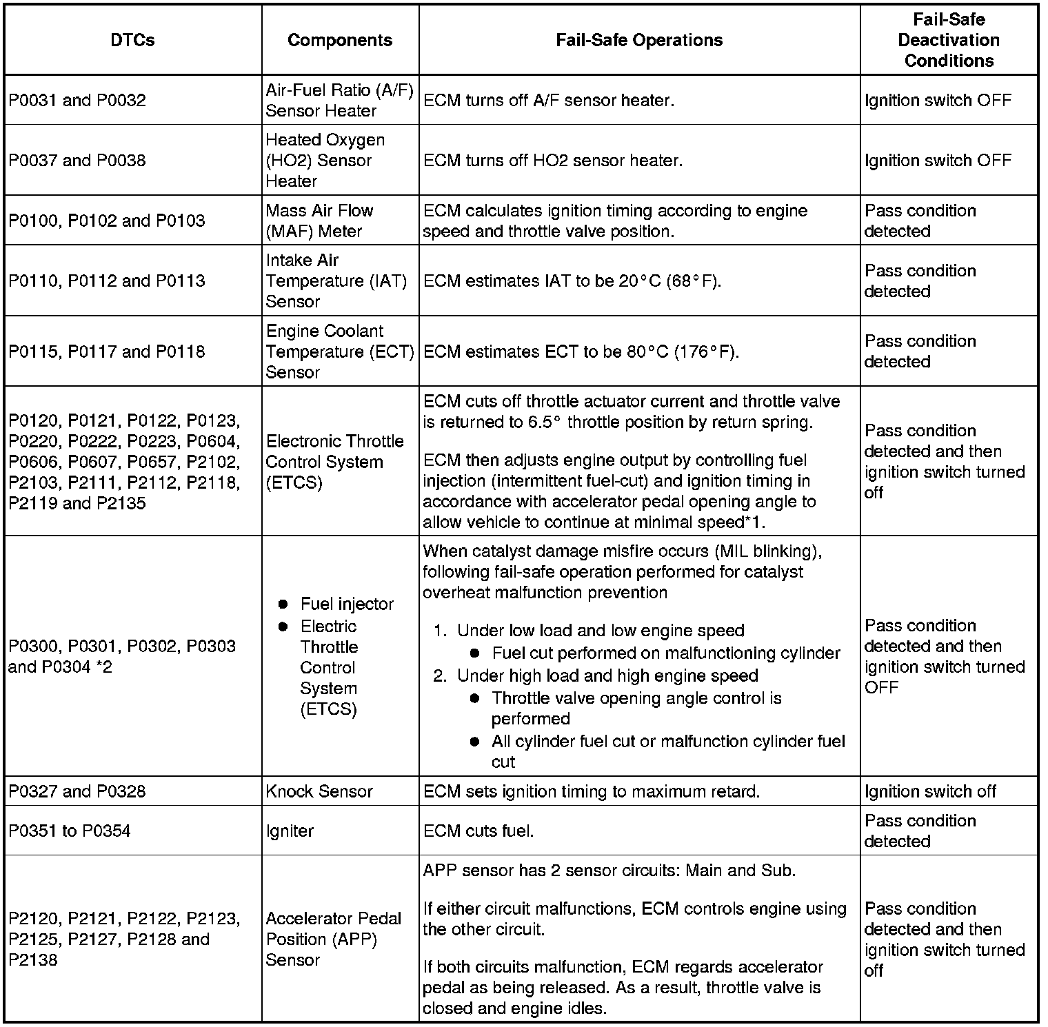 - *2: Misfire related fail-safe operations occur when catalyst overheat malfunction occur.