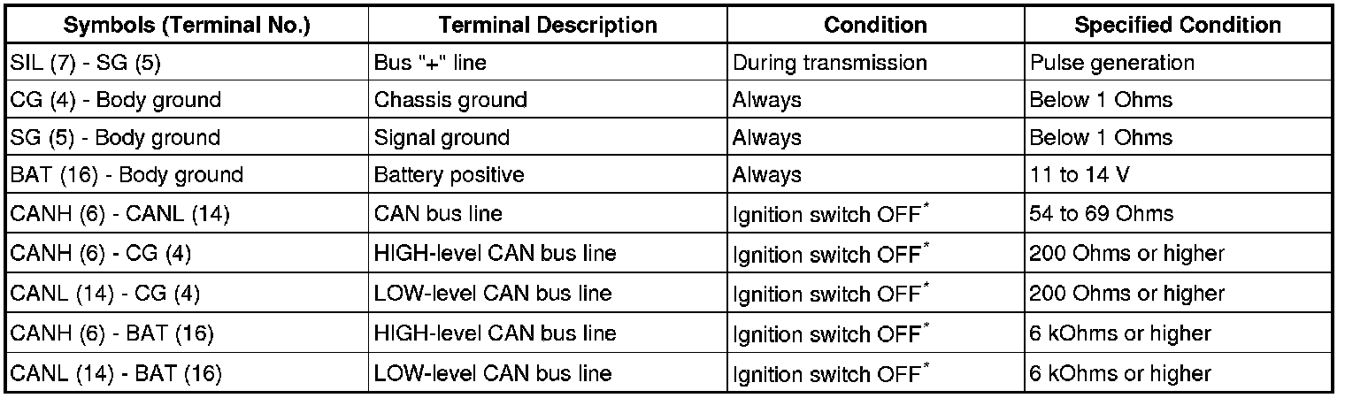 NOTICE: *: Before measuring the resistance, leave the vehicle as is for at least 1 minute and do not operate the ignition switch, any other switches or the doors.
