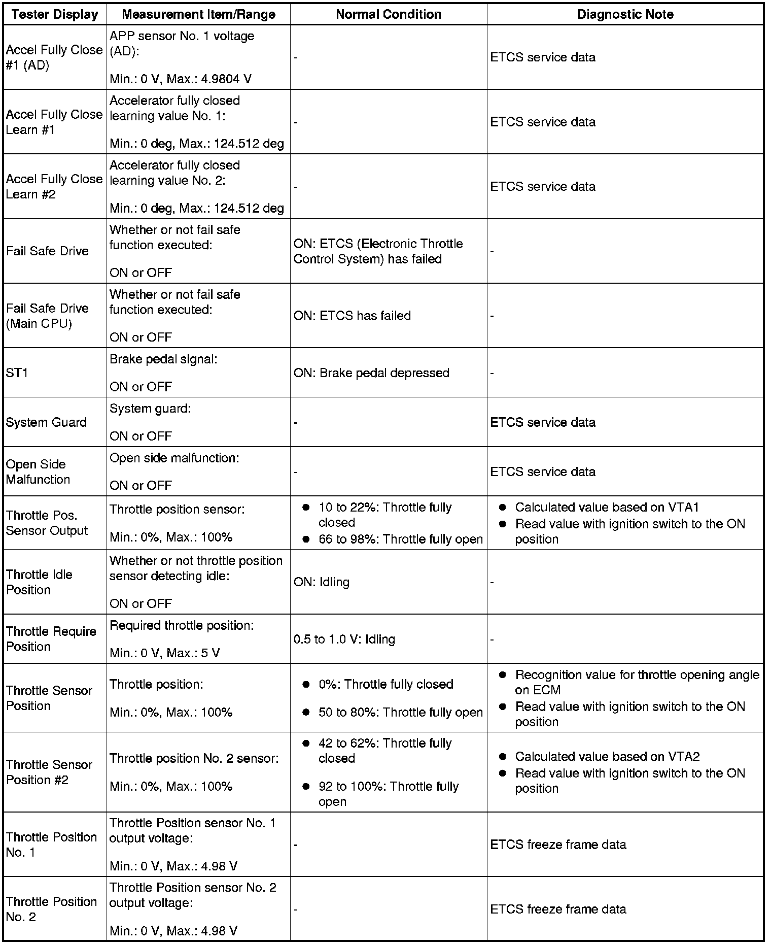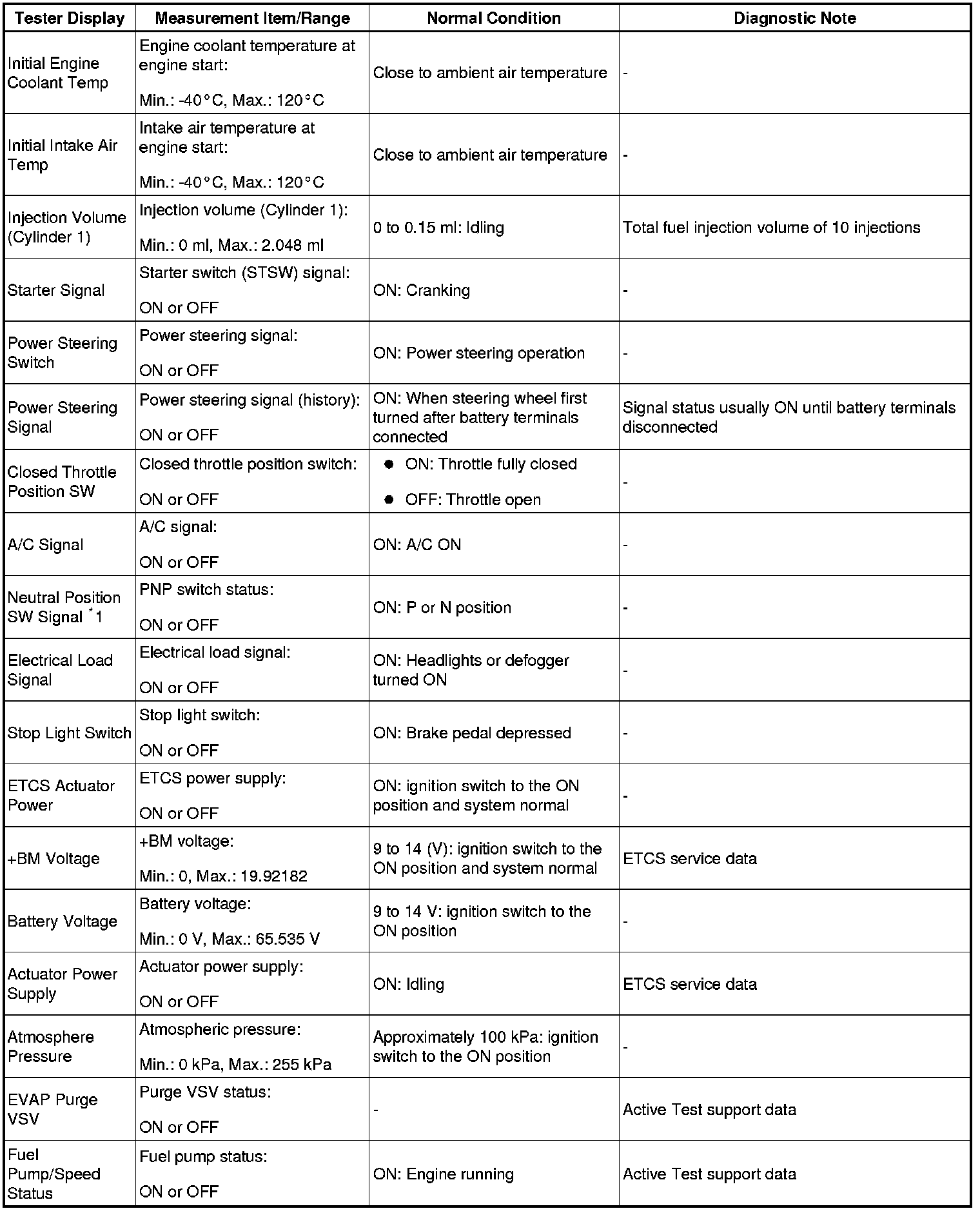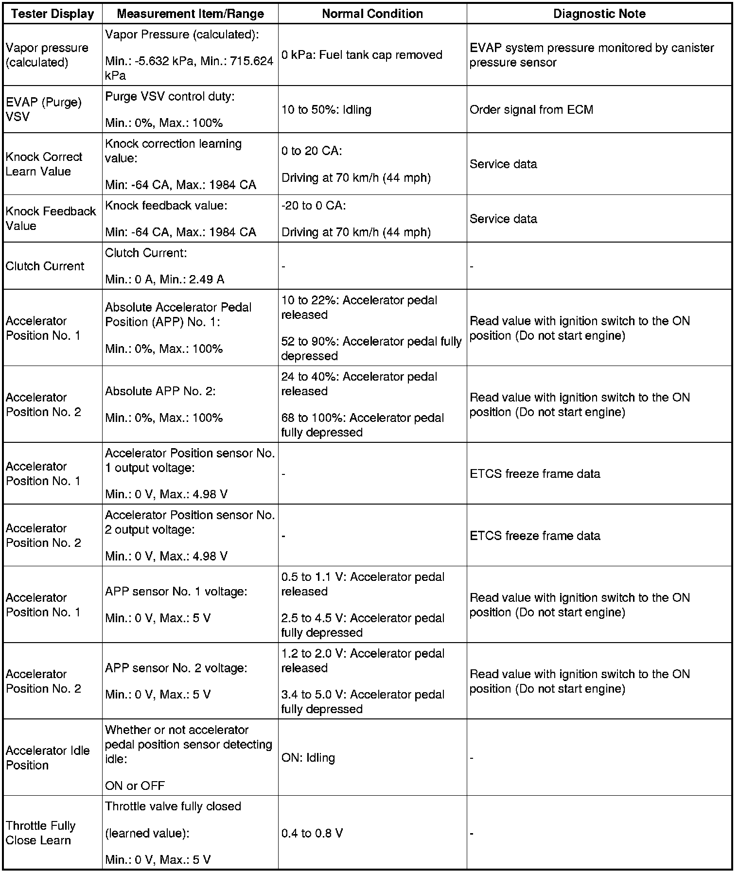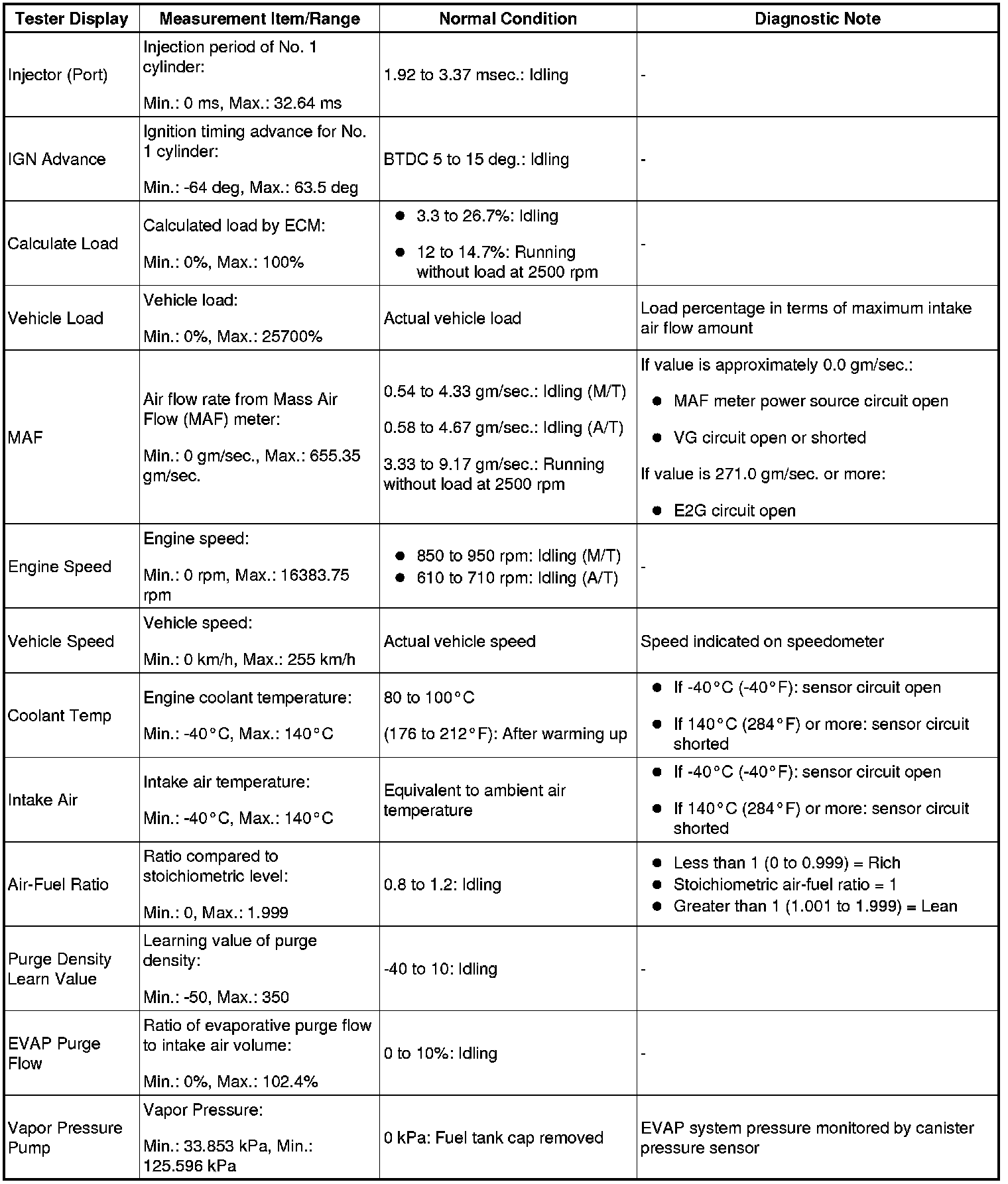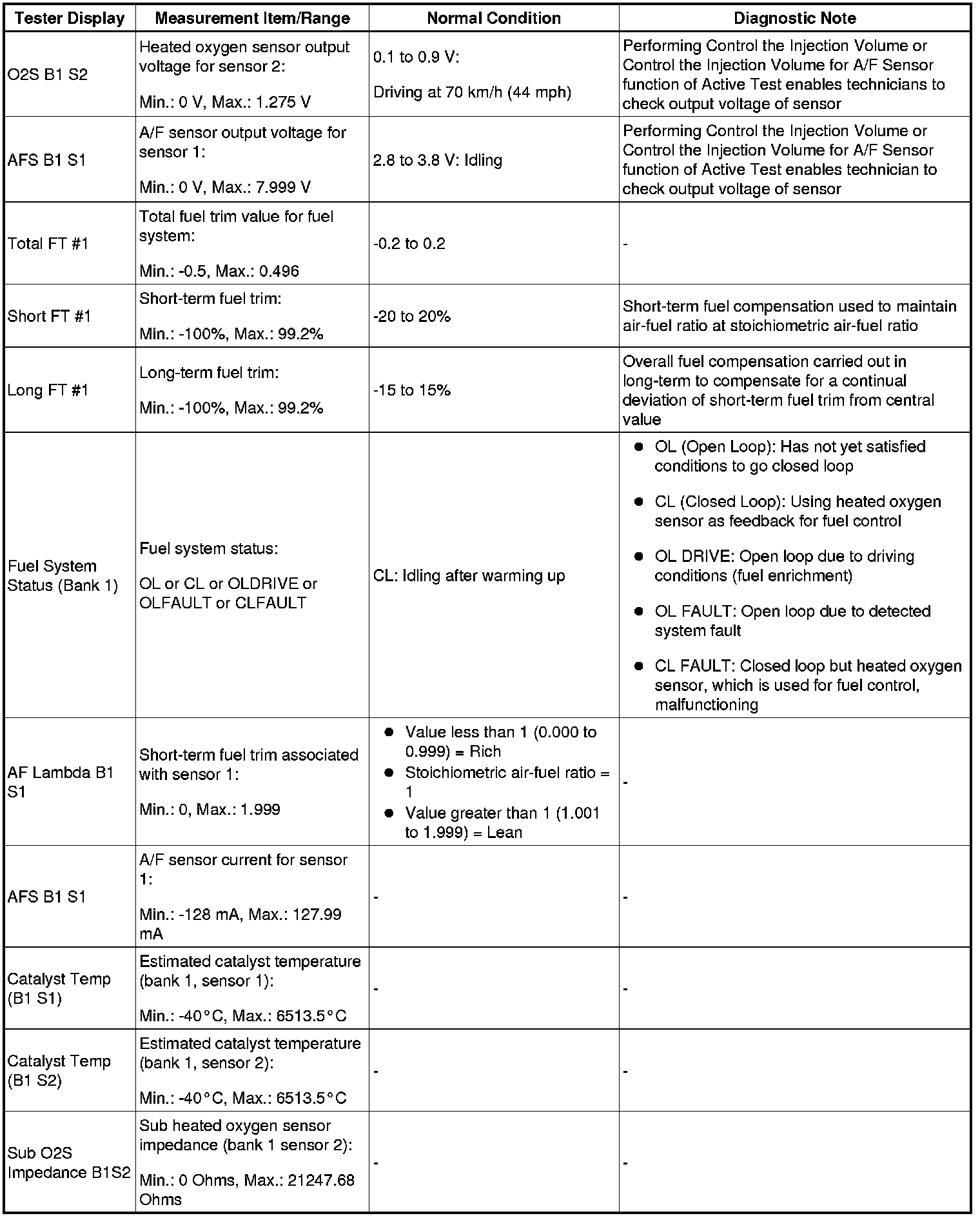 HINT: By reading the Data List displayed on the Techstream, values can be checked, including those of the switches, sensors, and actuators, without removing any parts. Reading the Data List as the first step in troubleshooting is one method to shorten diagnostic time.