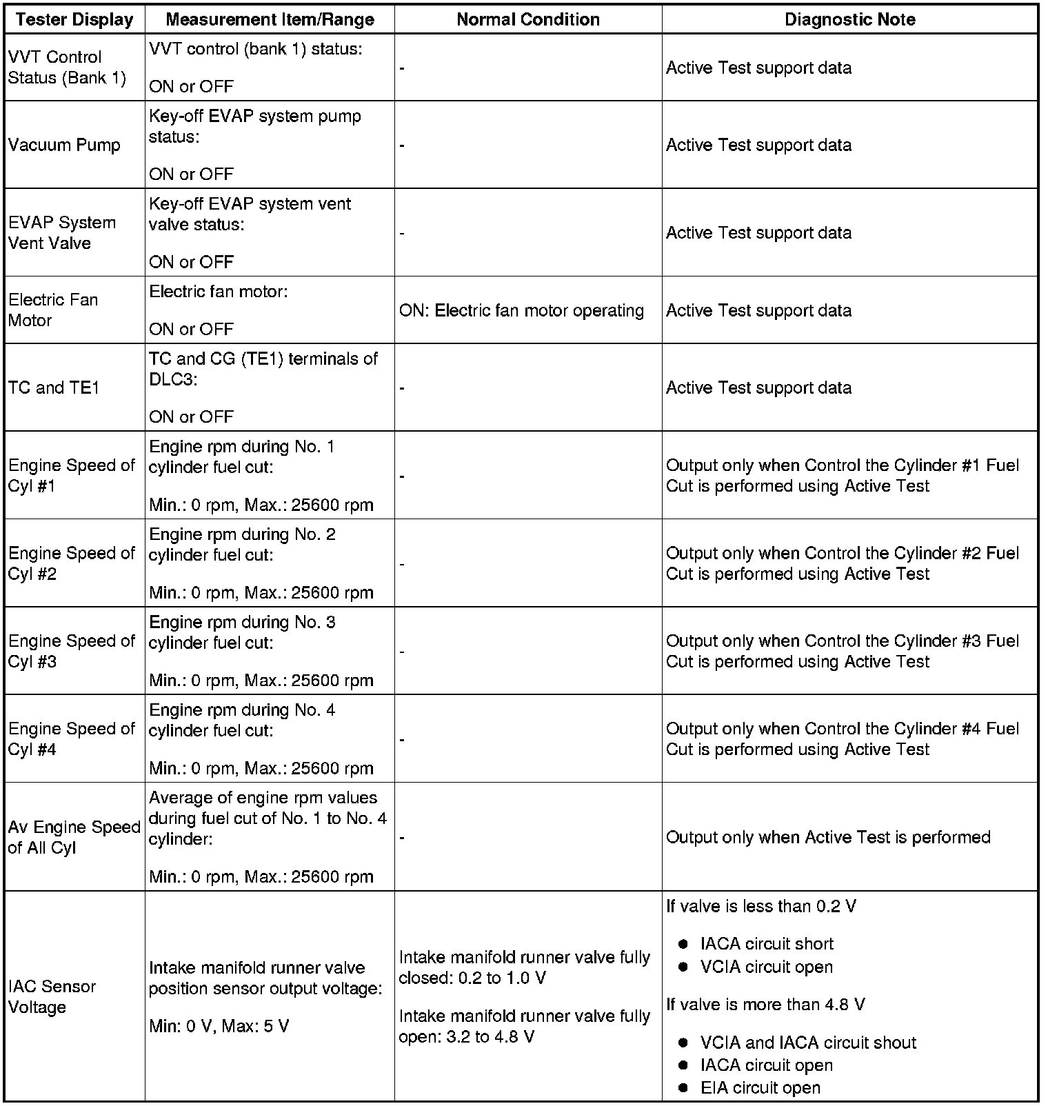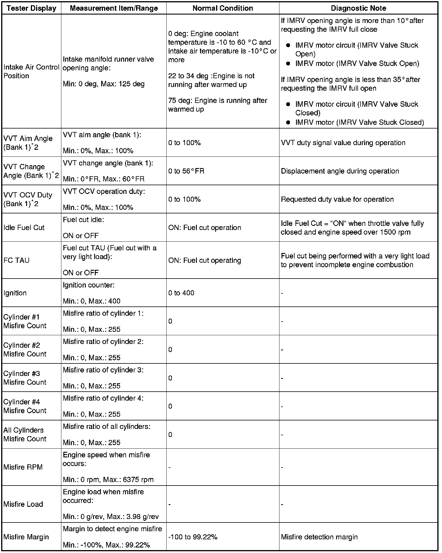 - *2: Data List values are displayed only when performing the following Active Test: Control the VVT Linear. For other Active Tests, the Data List value will be 0.