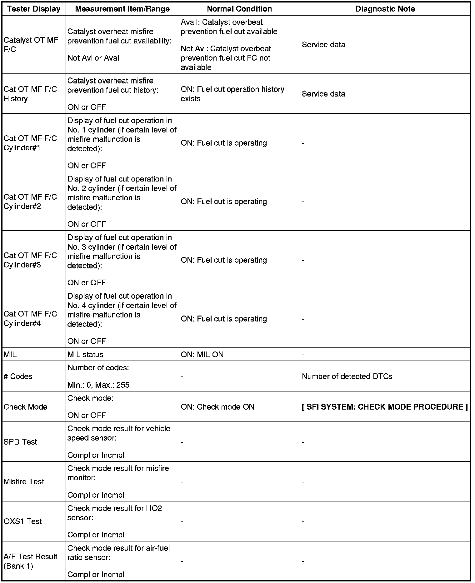 NOTICE: *3: If the display of the Data List's Catalyst OT MF F/C item is Not Avl, perform this Active Test with the vehicle stopped and the engine idling. If the display of the Data List's Catalyst OT MF F/C item is Avail, perform this Active Test as described below.