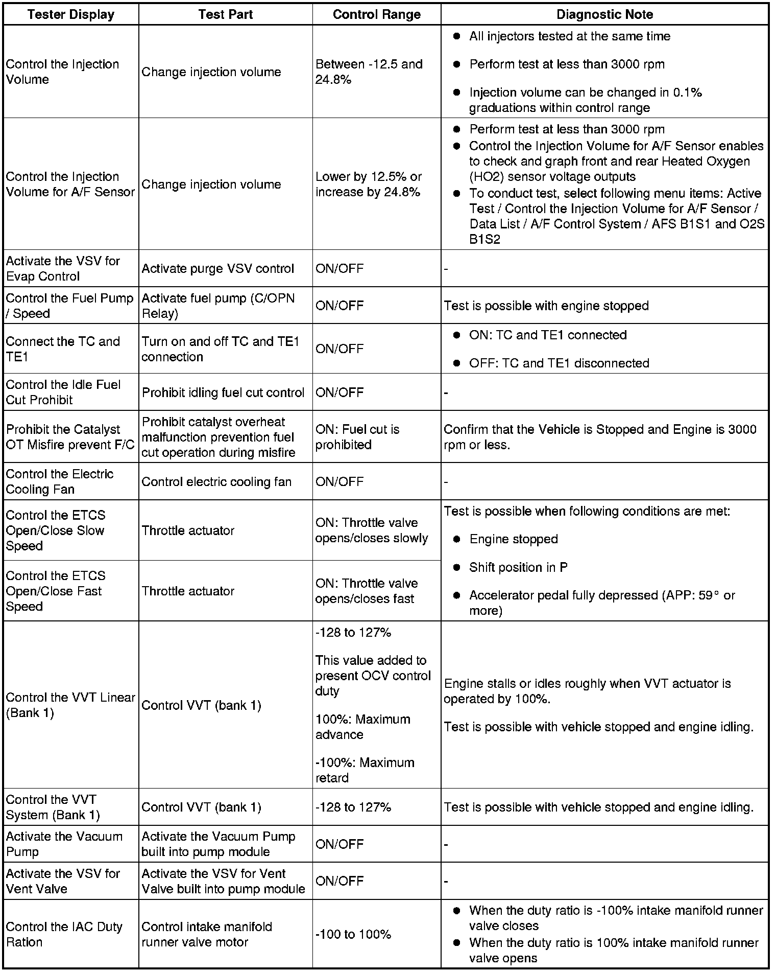 HINT: Performing an Active Test enables components including the relays, VSV (Vacuum Switching Valve) and actuators, to be operated without removing any parts. The Active Test can be performed with Techstream. Performing the Active Test as the first step in troubleshooting is one method to shorten diagnostic time.