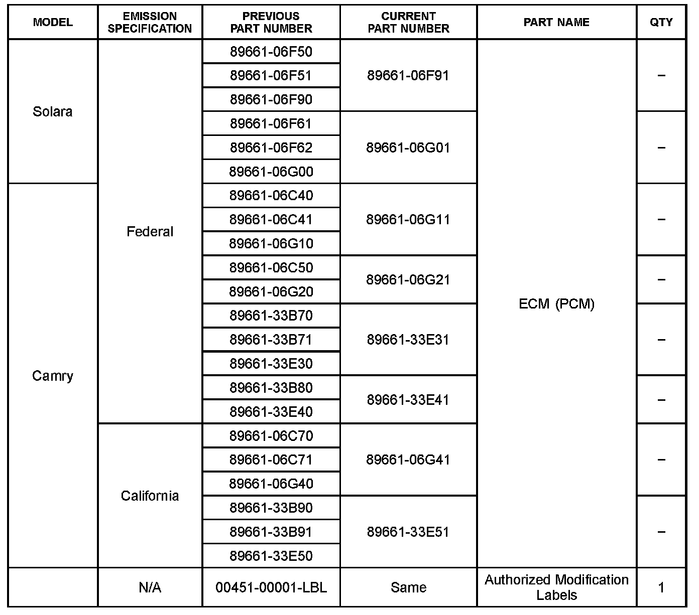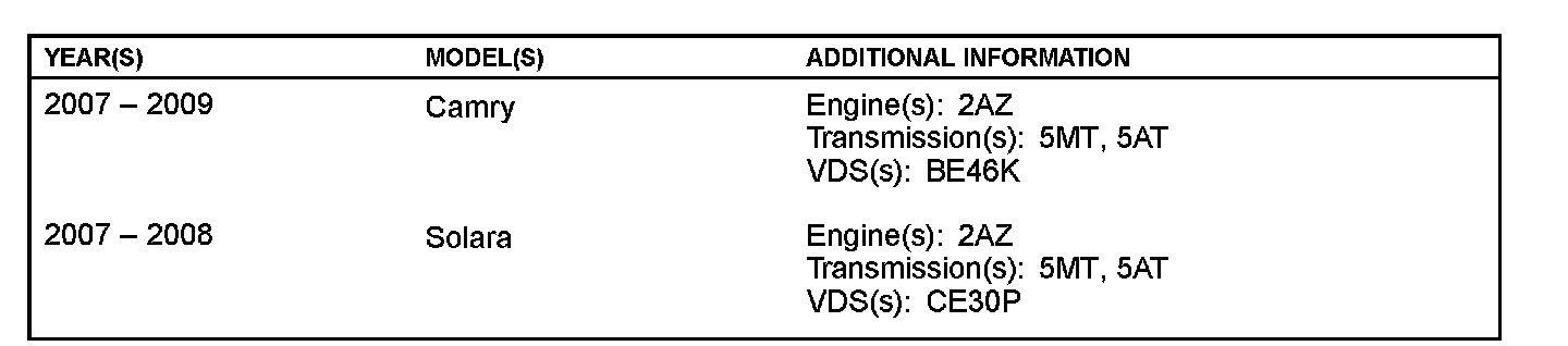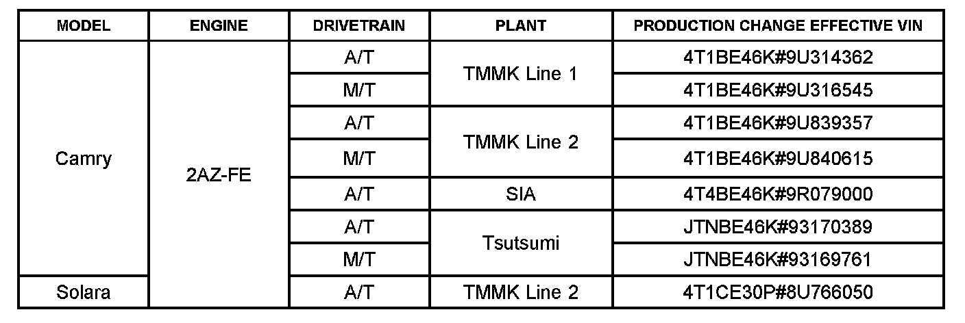 ^ Applicability has been updated to include 2007 - 2008 model year Solara and 2008 - 2009 model year Camry.