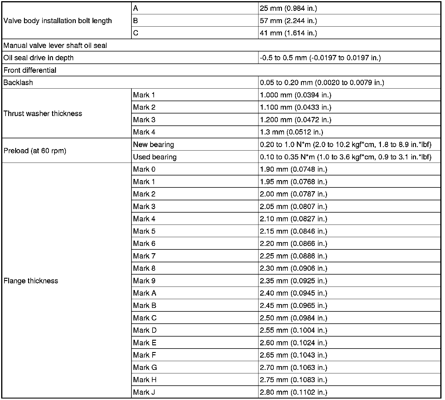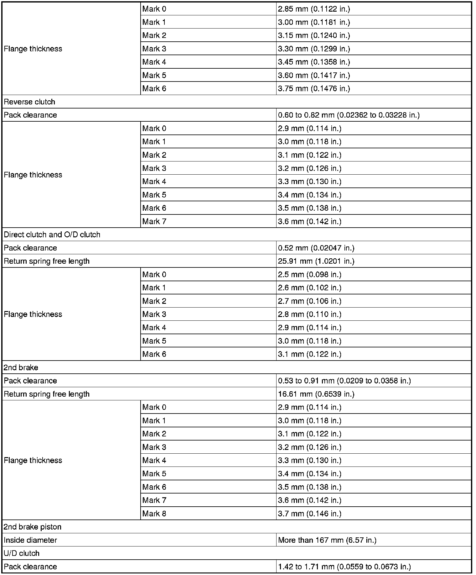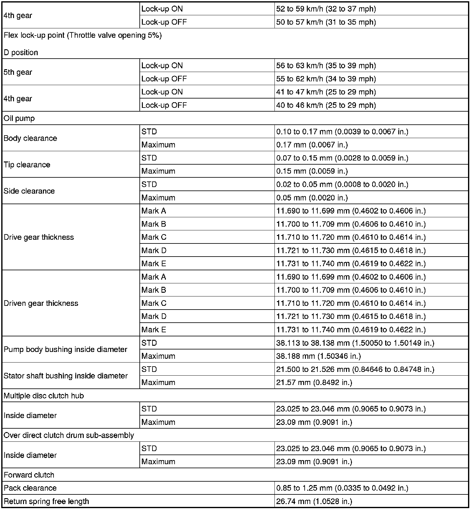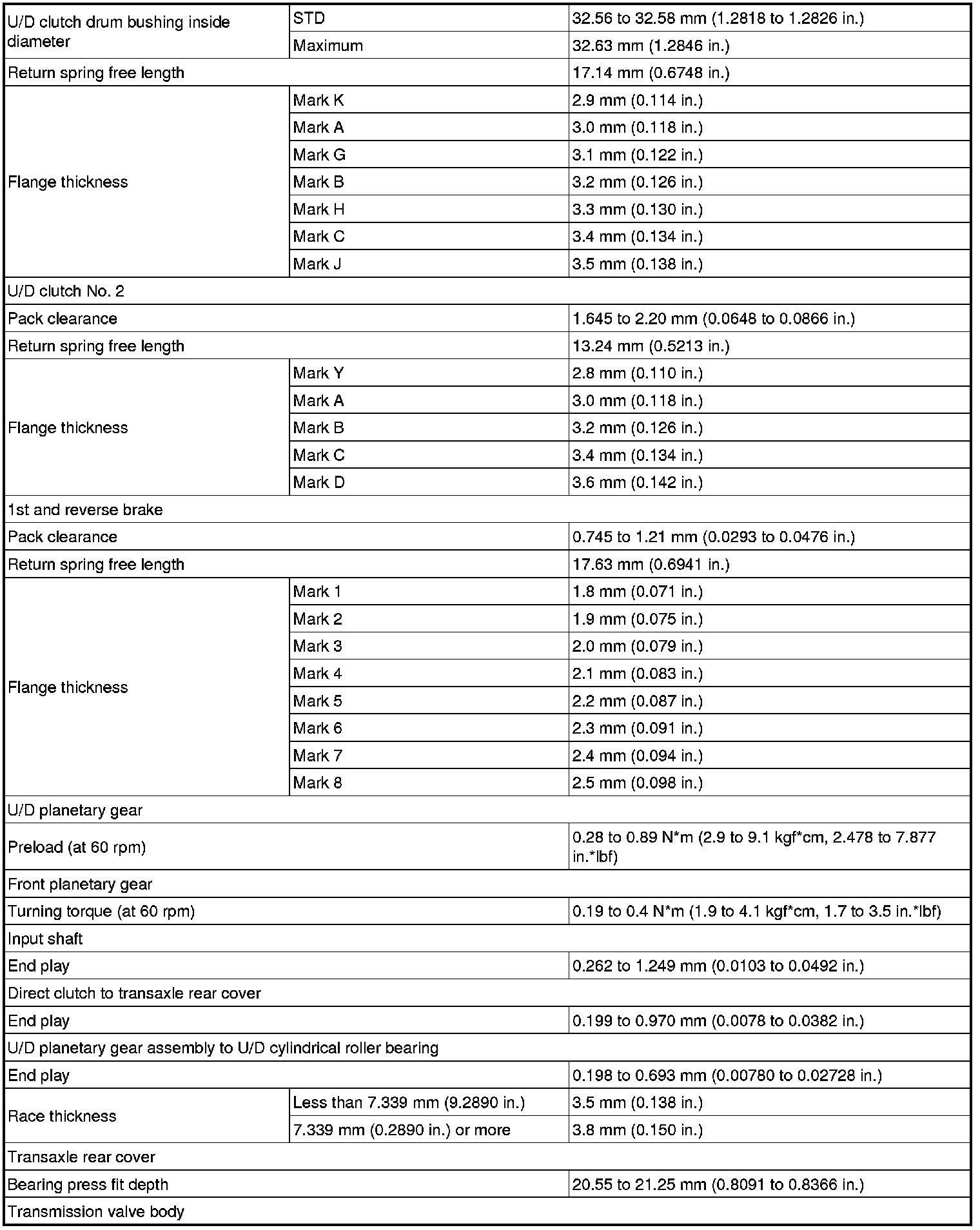 SERVICE SPECIFICATIONS: U250E AUTOMATIC TRANSAXLE: SERVICE DATA