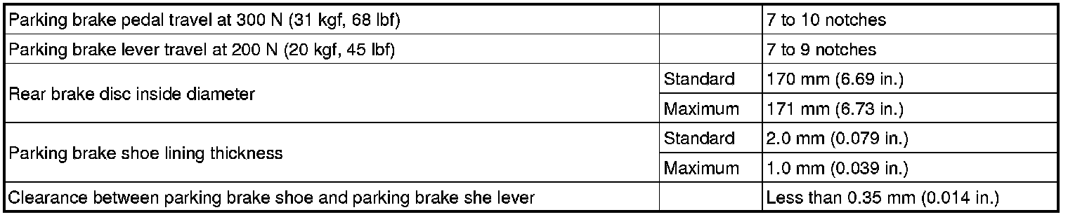 SERVICE SPECIFICATIONS: PARKING BRAKE: SERVICE DATA