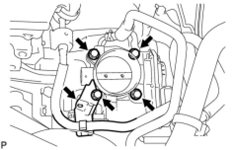 Install the throttle body and fuel pipe clamp with the 4 bolts.