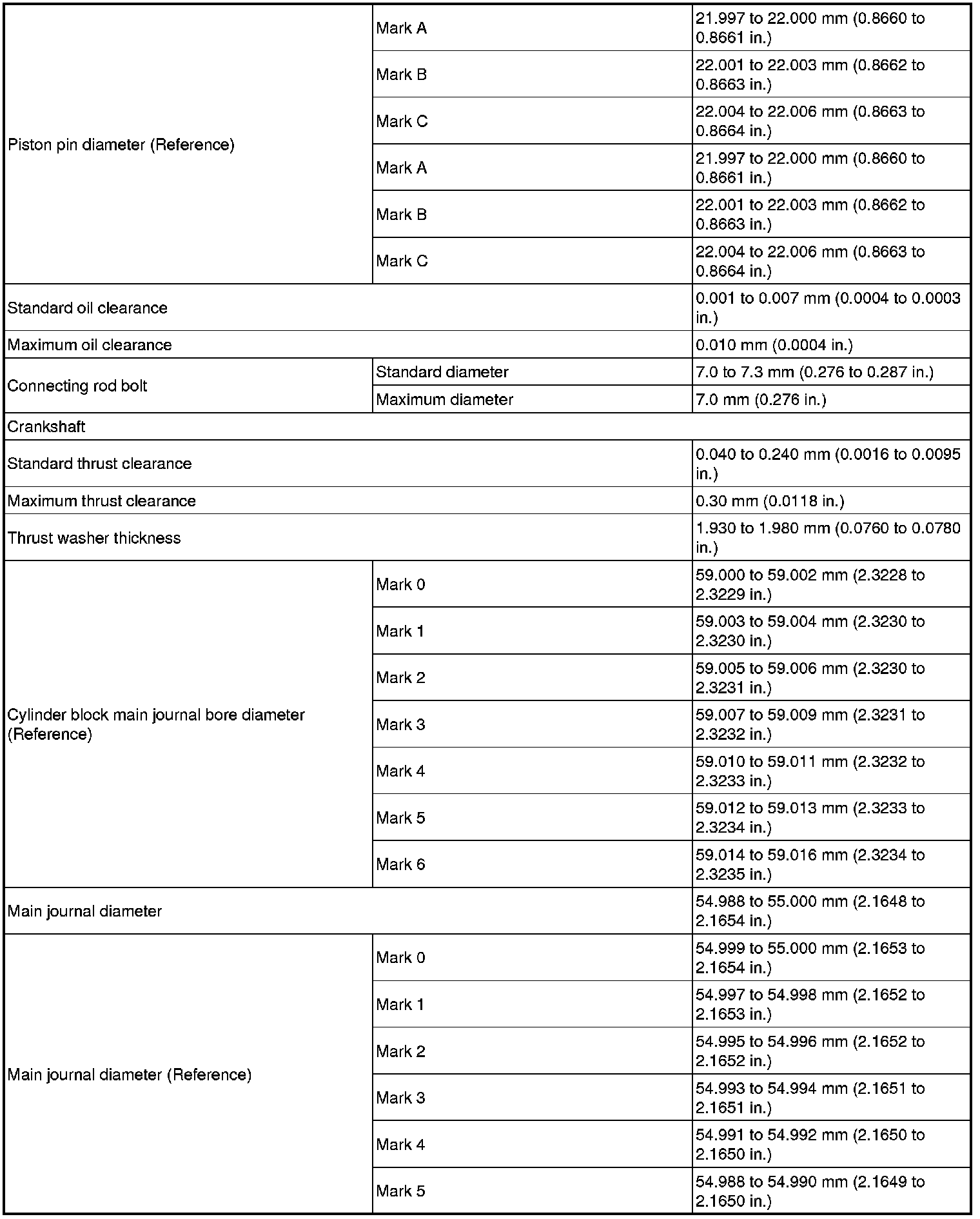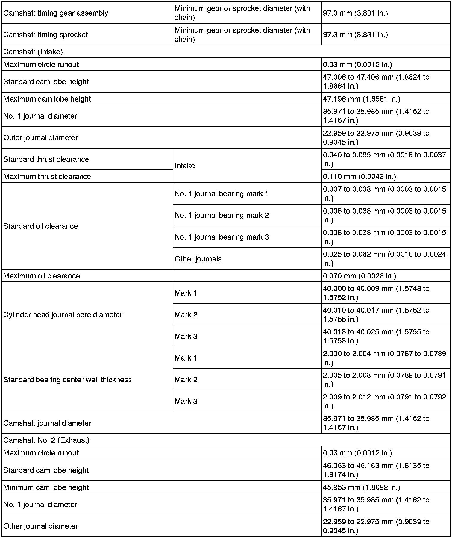 SERVICE SPECIFICATIONS: 2AZ-FE ENGINE MECHANICAL: SERVICE DATA
