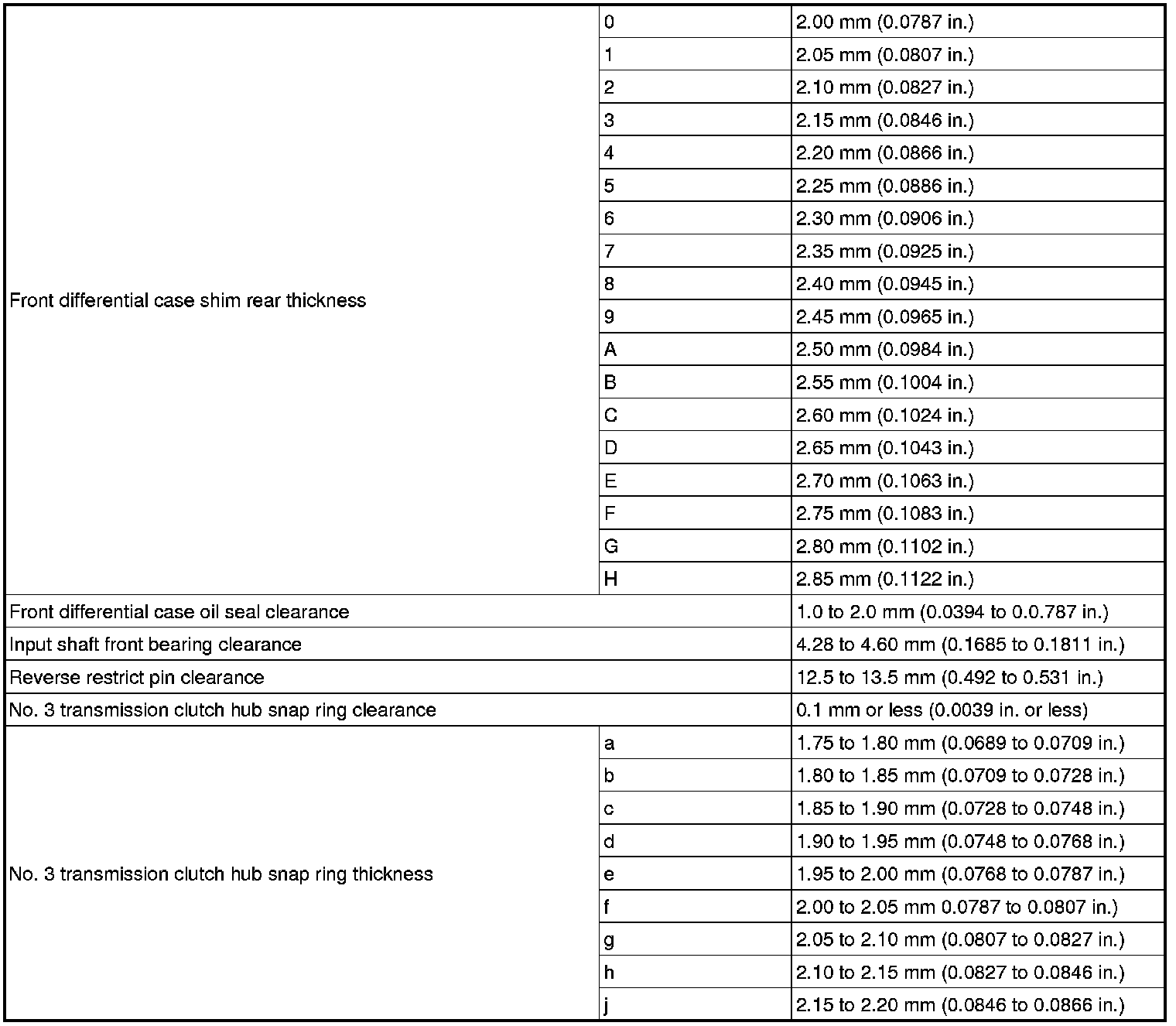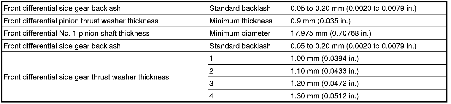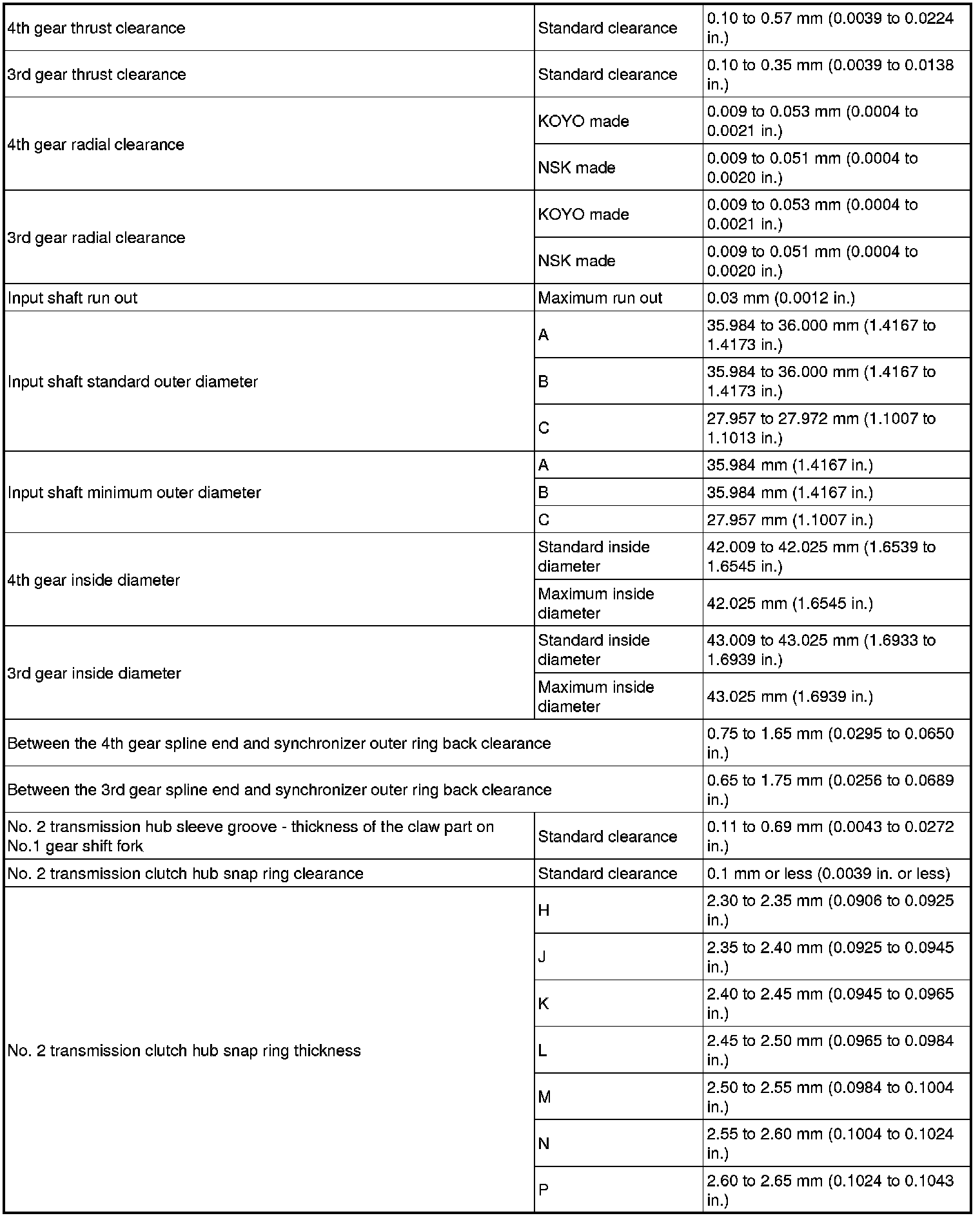 SERVICE SPECIFICATIONS: E351 MANUAL TRANSAXLE: SERVICE DATA