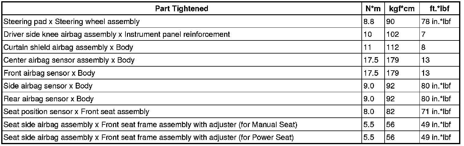 SERVICE SPECIFICATIONS: SUPPLEMENTAL RESTRAINT SYSTEM: TORQUE SPECIFICATIONS