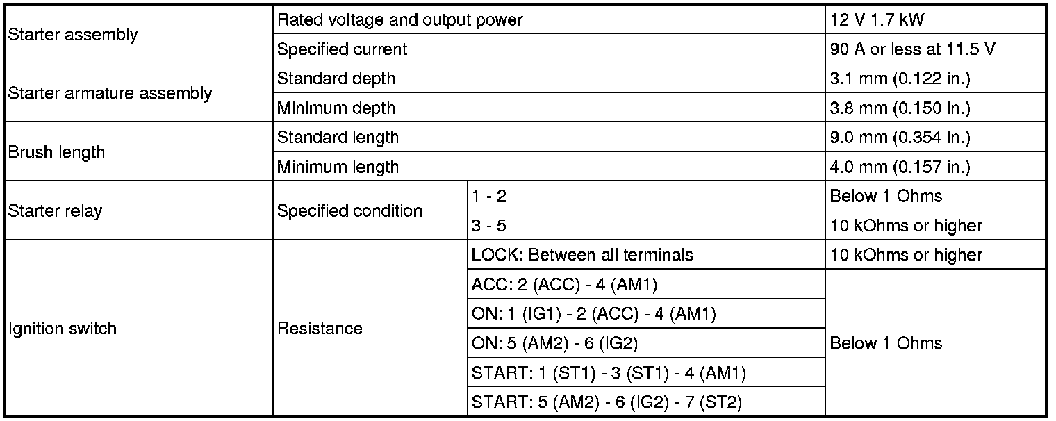 SERVICE SPECIFICATIONS: 2AZ-FE STARTING: SERVICE DATA
