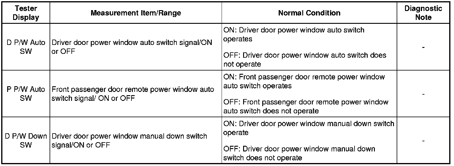 WINDSHIELD / WINDOWGLASS: POWER WINDOW CONTROL SYSTEM: DATA LIST / ACTIVE TEST