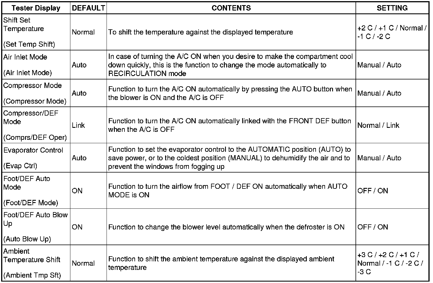 AIR CONDITIONING: AIR CONDITIONING SYSTEM: CUSTOMIZE PARAMETERS