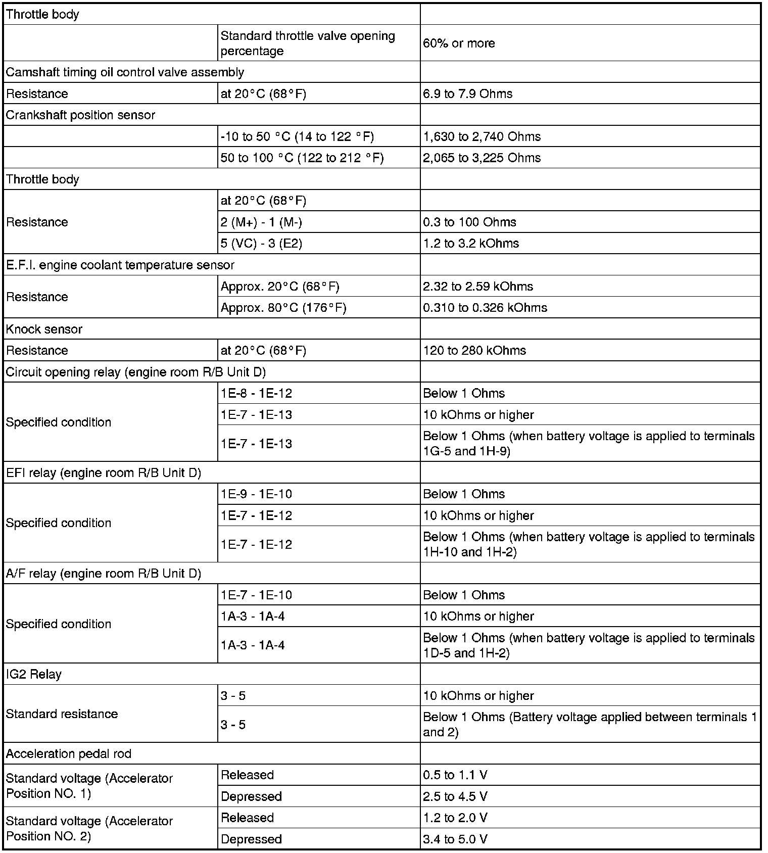 SERVICE SPECIFICATIONS: 2GR-FE ENGINE CONTROL SYSTEM: SERVICE DATA