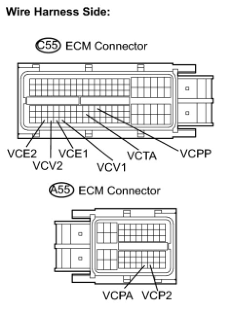 (h) Disconnect the C55 and A55 ECM connectors.