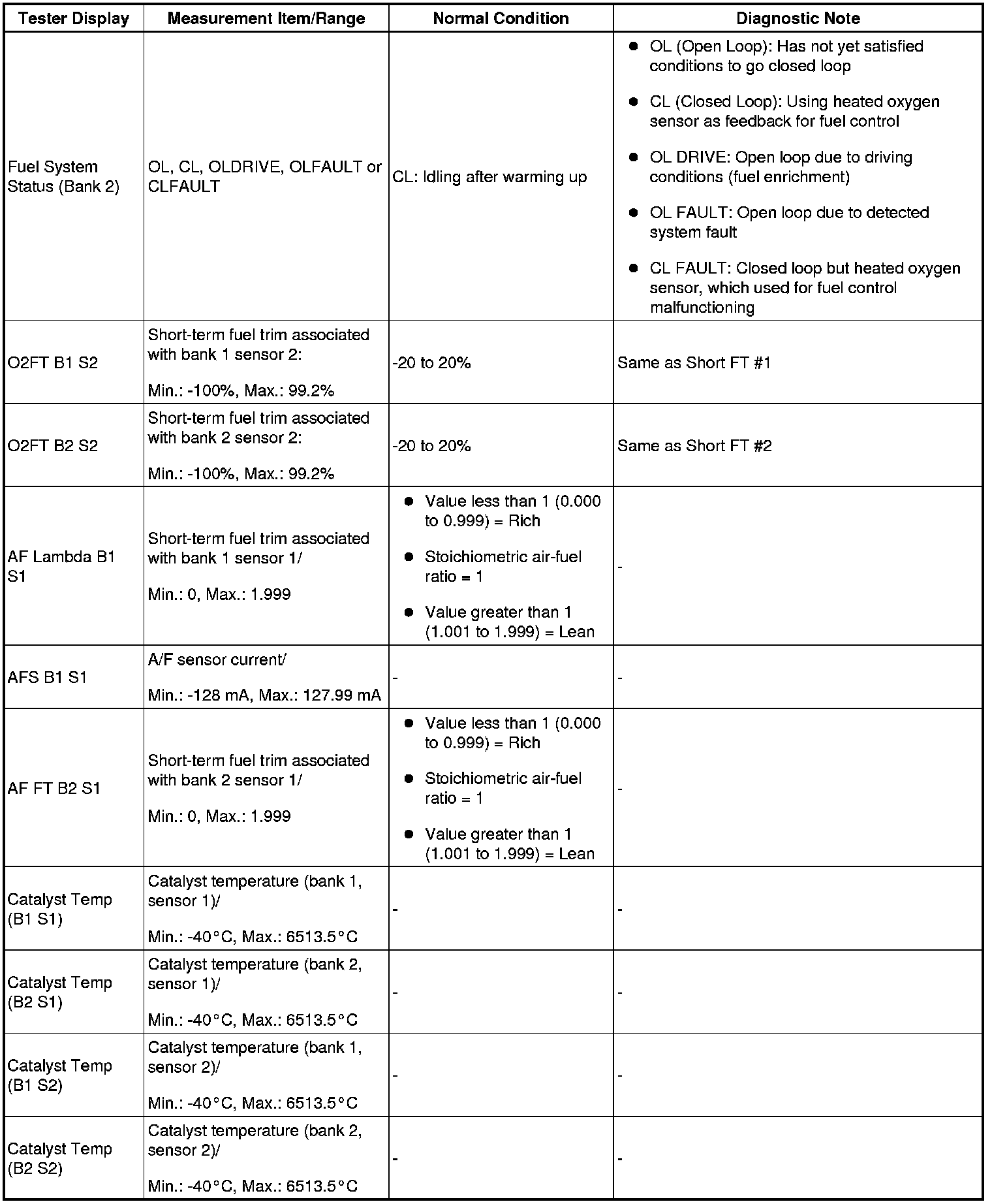 - *1: Data List values are displayed only when performing the following Active Test: Control the VVT Linear (Bank 1 or Bank 2) or Control the VVT Exhaust Linear (Bank 1 or Bank 2). For other Active Test, the Data List value will be 0.
