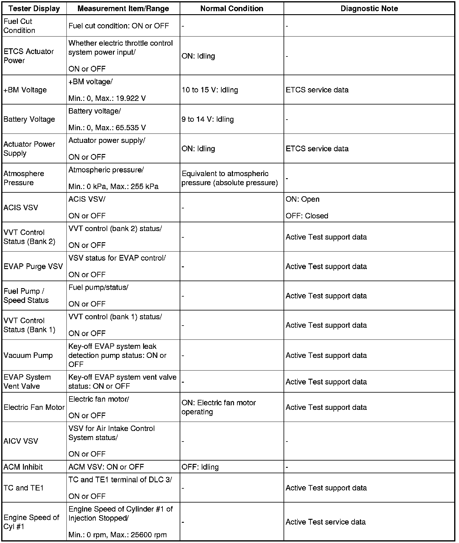 HINT: By reading the Data List displayed on the Techstream, you can check values, including those of the switches, sensors, and actuators, without removing any parts. Reading the Data List as the first step in troubleshooting is one method of shortening diagnostic time.