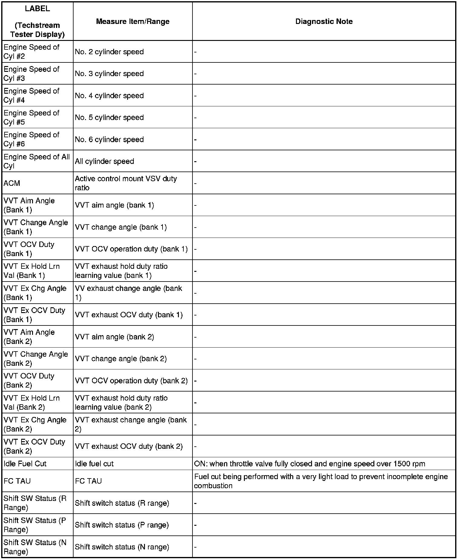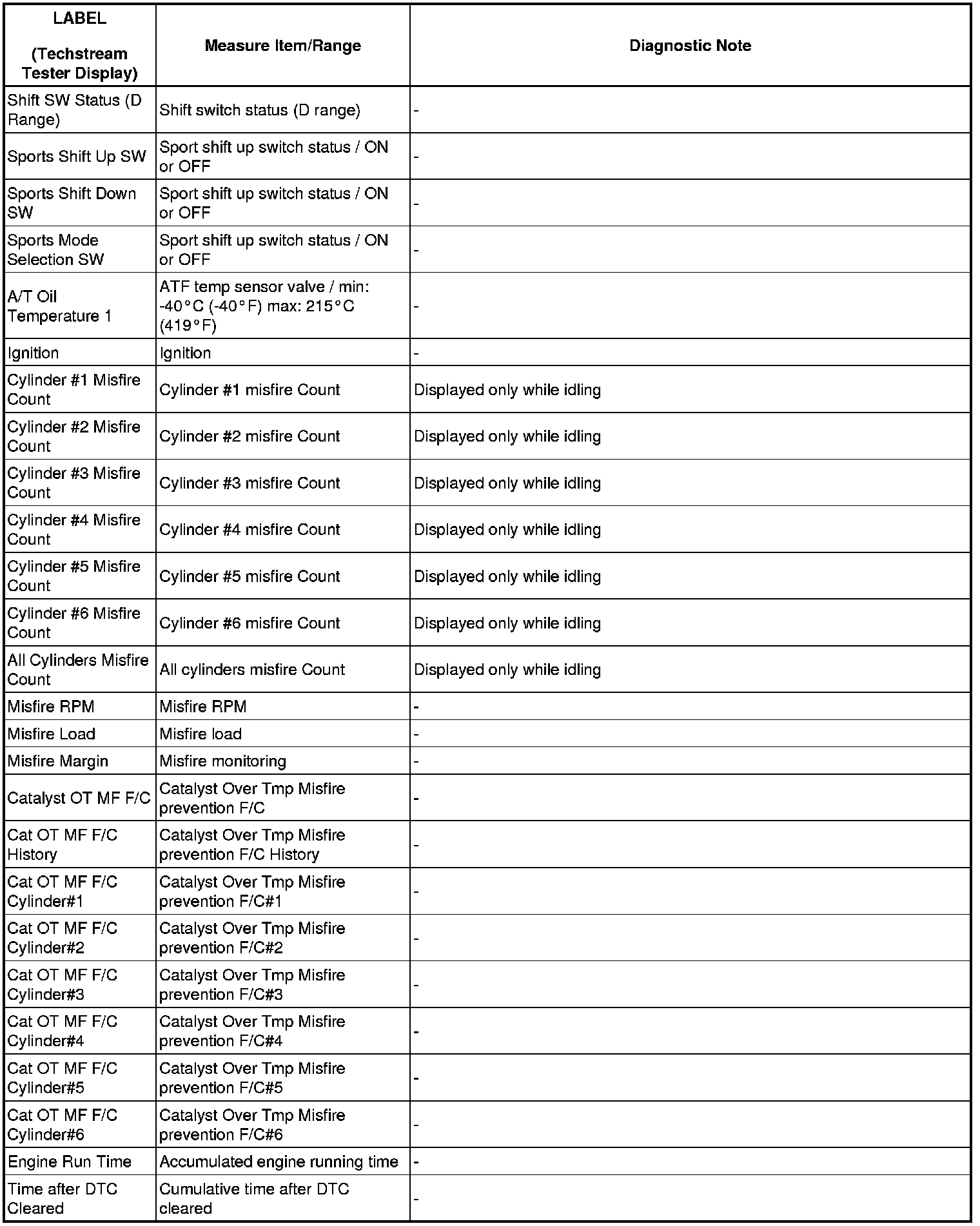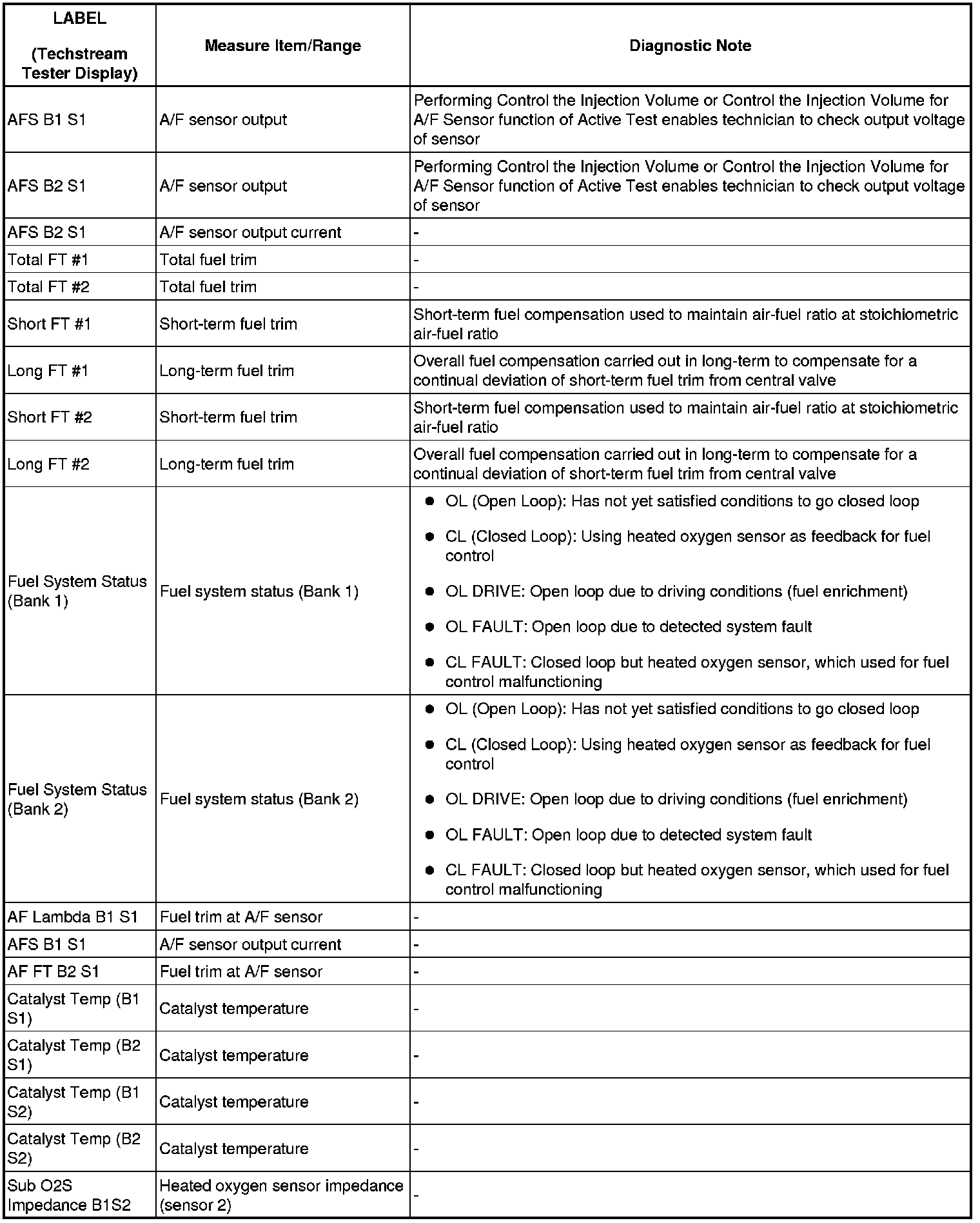 2GR-FE ENGINE CONTROL SYSTEM: SFI SYSTEM: FREEZE FRAME DATA