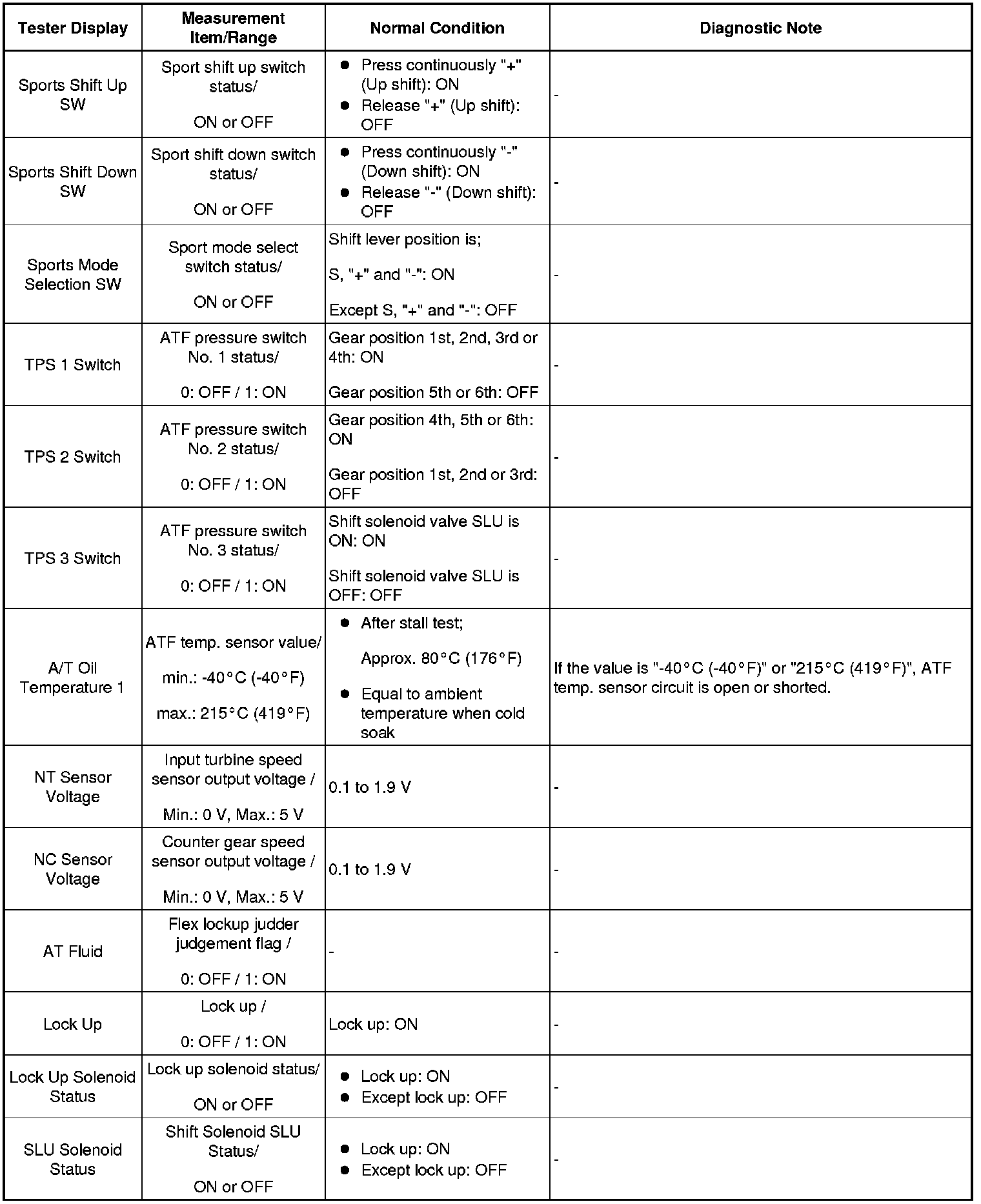 U660E AUTOMATIC TRANSAXLE: AUTOMATIC TRANSAXLE SYSTEM: DATA LIST / ACTIVE TEST