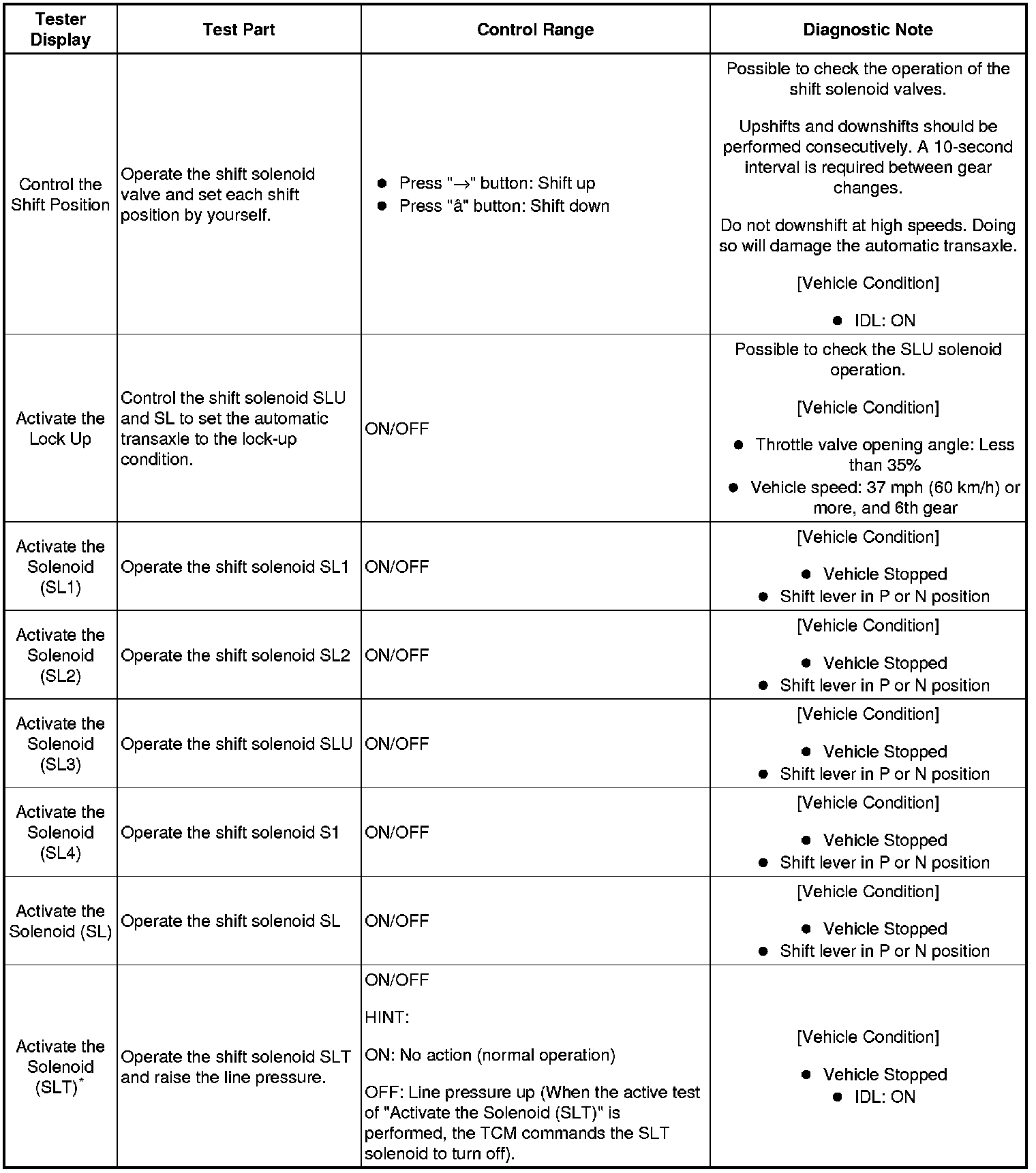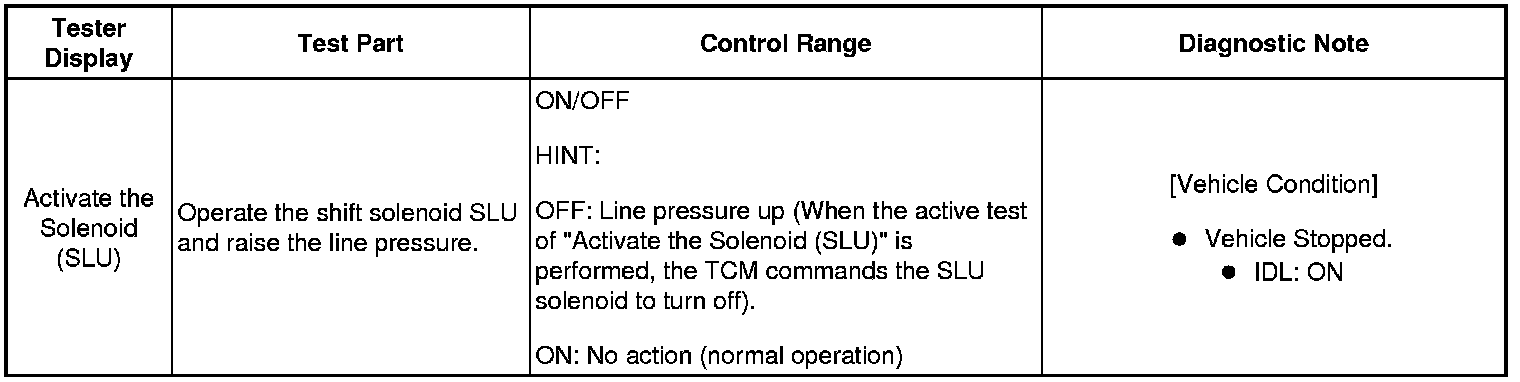 *: "Activate the Solenoid (SLT)" in the Active Test is performed to check the line pressure changes by connecting the SST to the automatic transaxle. The same SST is used for the HYDRAULIC TEST Hydraulic Test as well.)