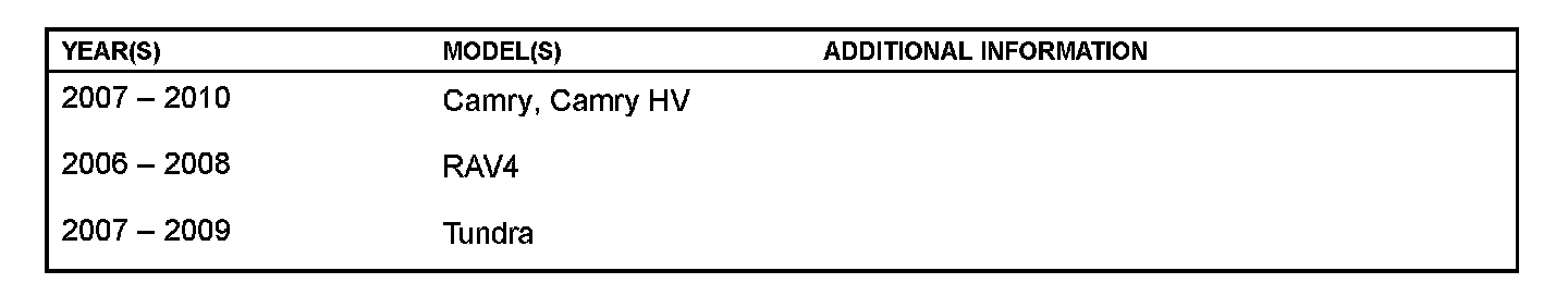 ^ Applicability has been updated to include 2008 - 2010 Camry and Camry HV, 2008 RAV4, and 2008 - 2009 Tundra vehicles.