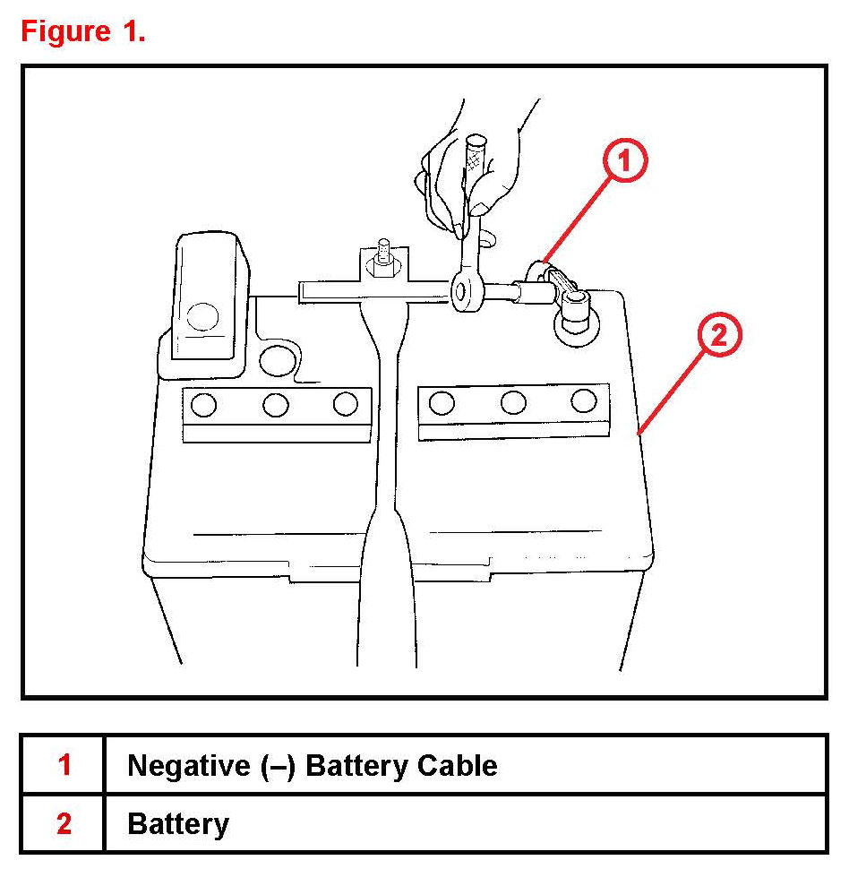 2. Loosen the negative (-) battery terminal of the battery cable so it becomes easier to remove from the negative (-) battery post later (Figure 1).