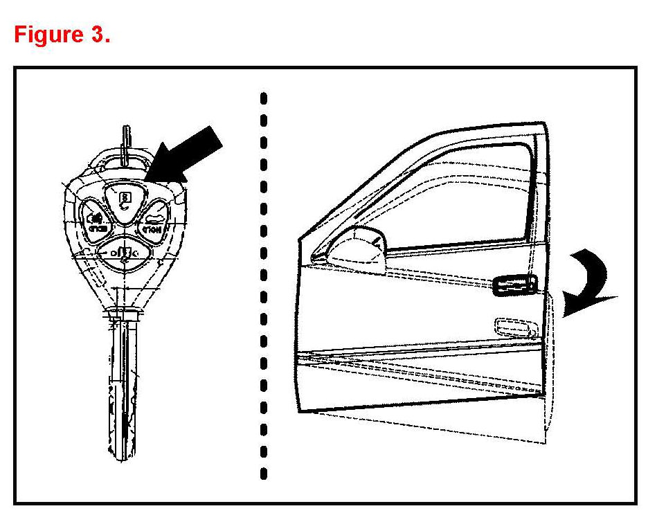 B. Using the remote control, press the unlock button one time. Open and close the driver's door within 30 seconds (Figure 3).
